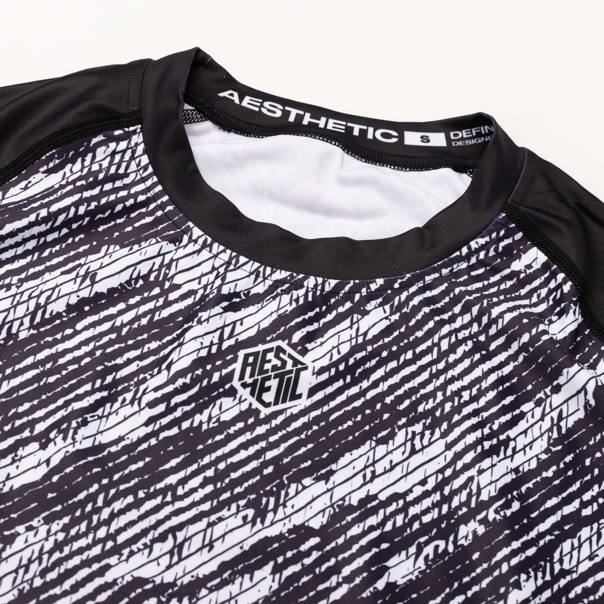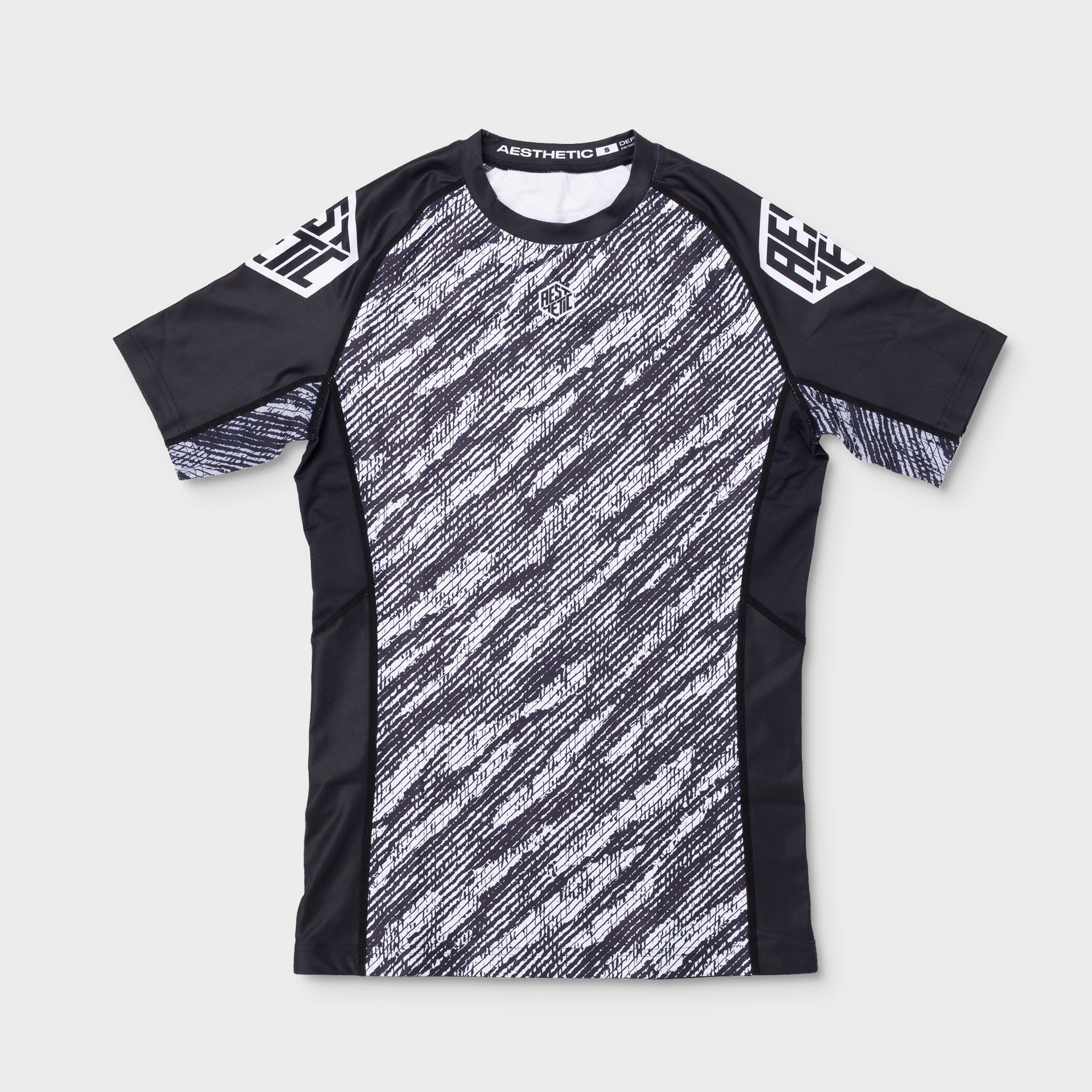 Aesthetic brings us their monochrome “Inkscape” Nogi top. A comfortable poly/spandex rash guard that’s stretchy, durable, and makes a great choice for grappling.