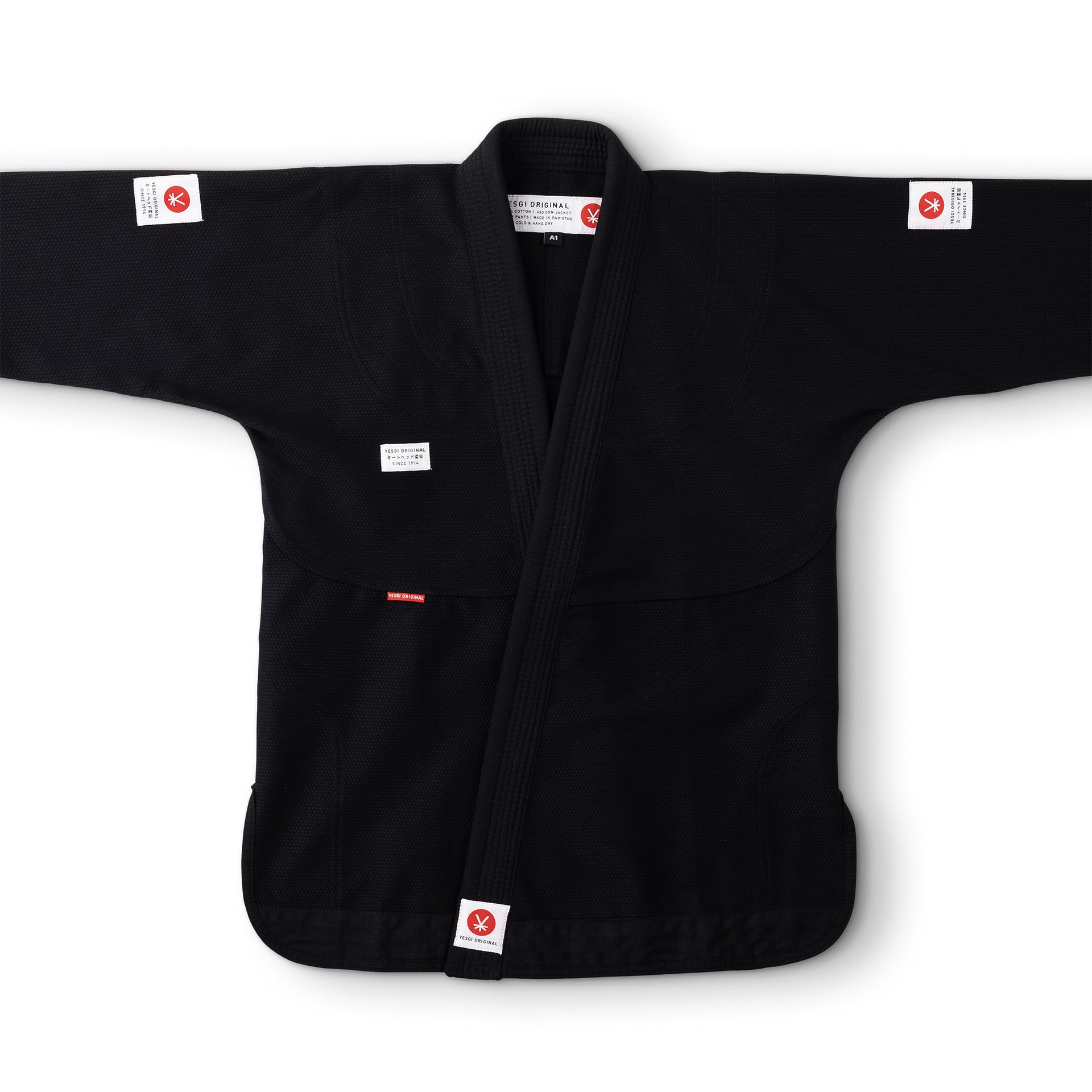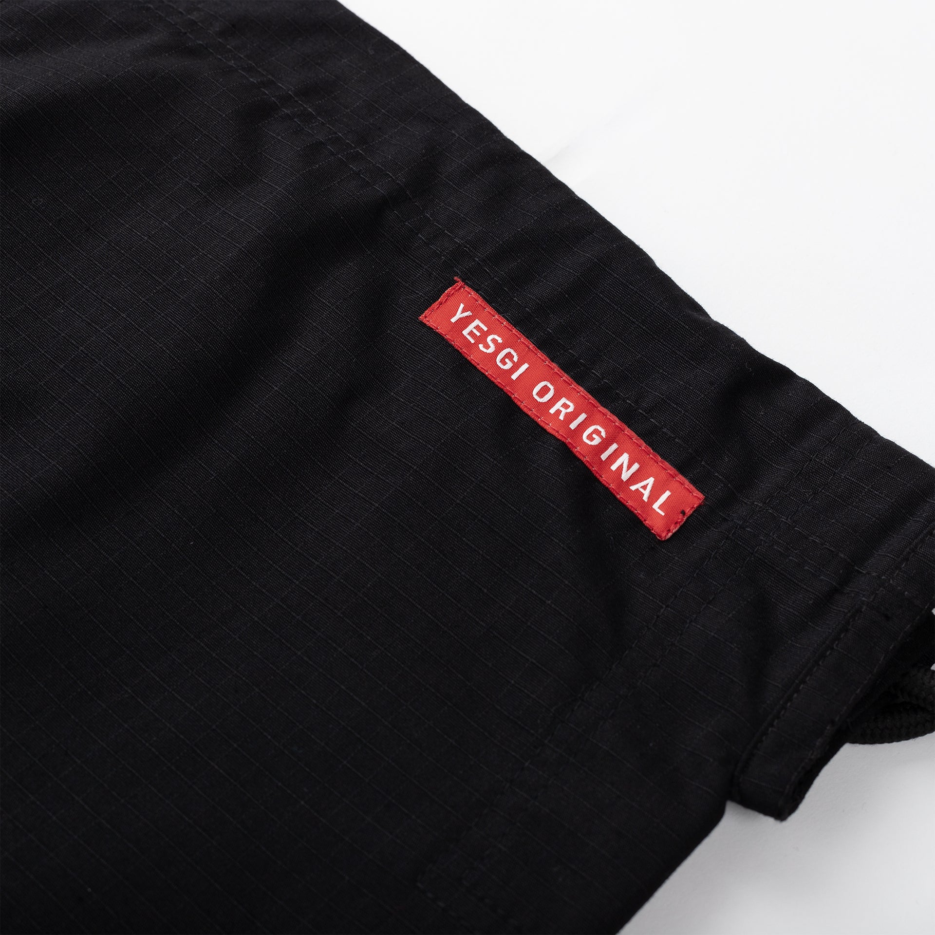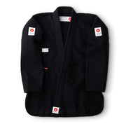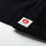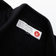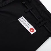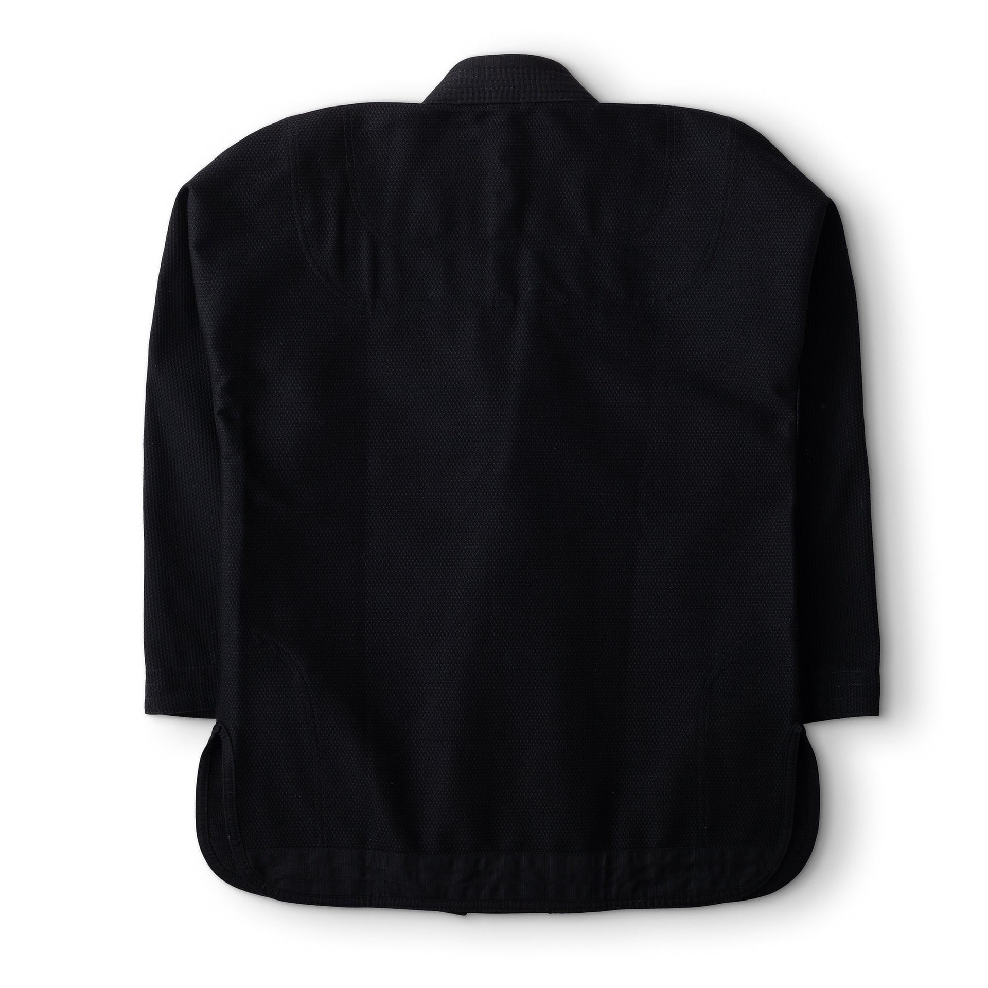 This sleek, all-black gi features a minimalist design with subtle branded patches and no contrasting stitching. It features a mid-weight 450 gsm top paired with 10 oz pants. The pearl weave jacket includes rounded vents and reinforced cuffs and hem, while the ripstop pants come with multiple drawstring loops and reinforced knees.