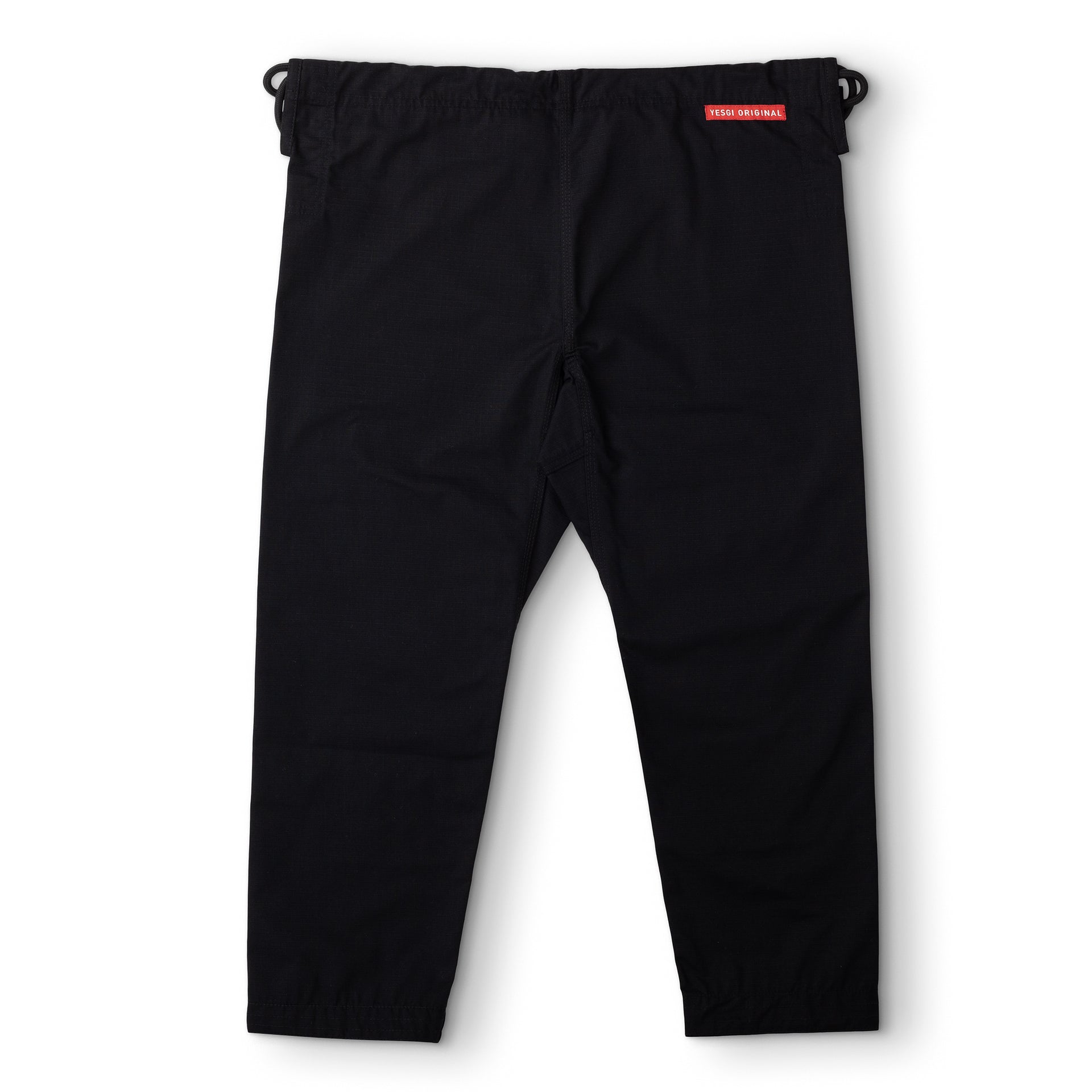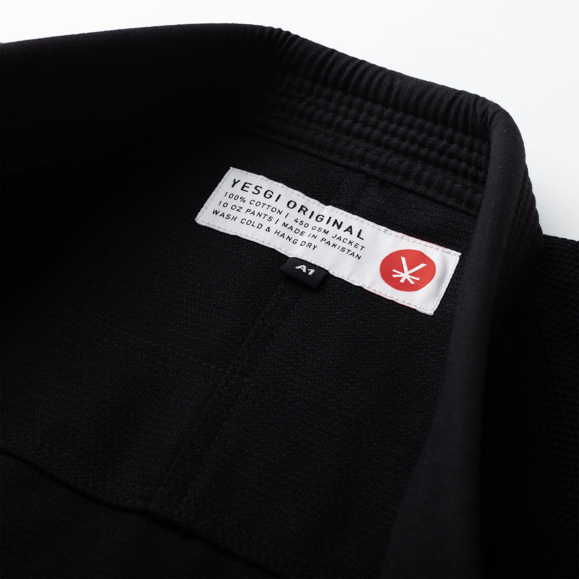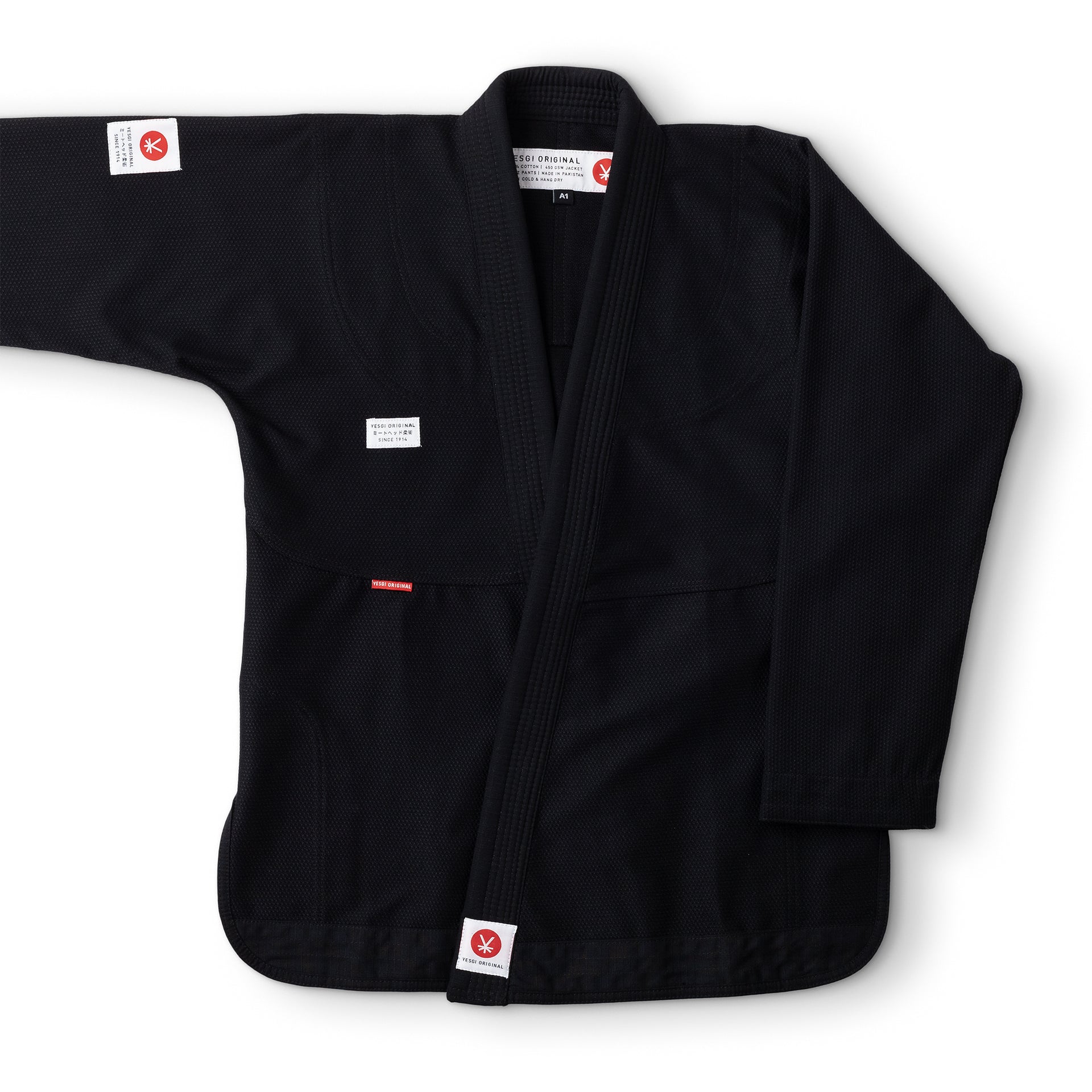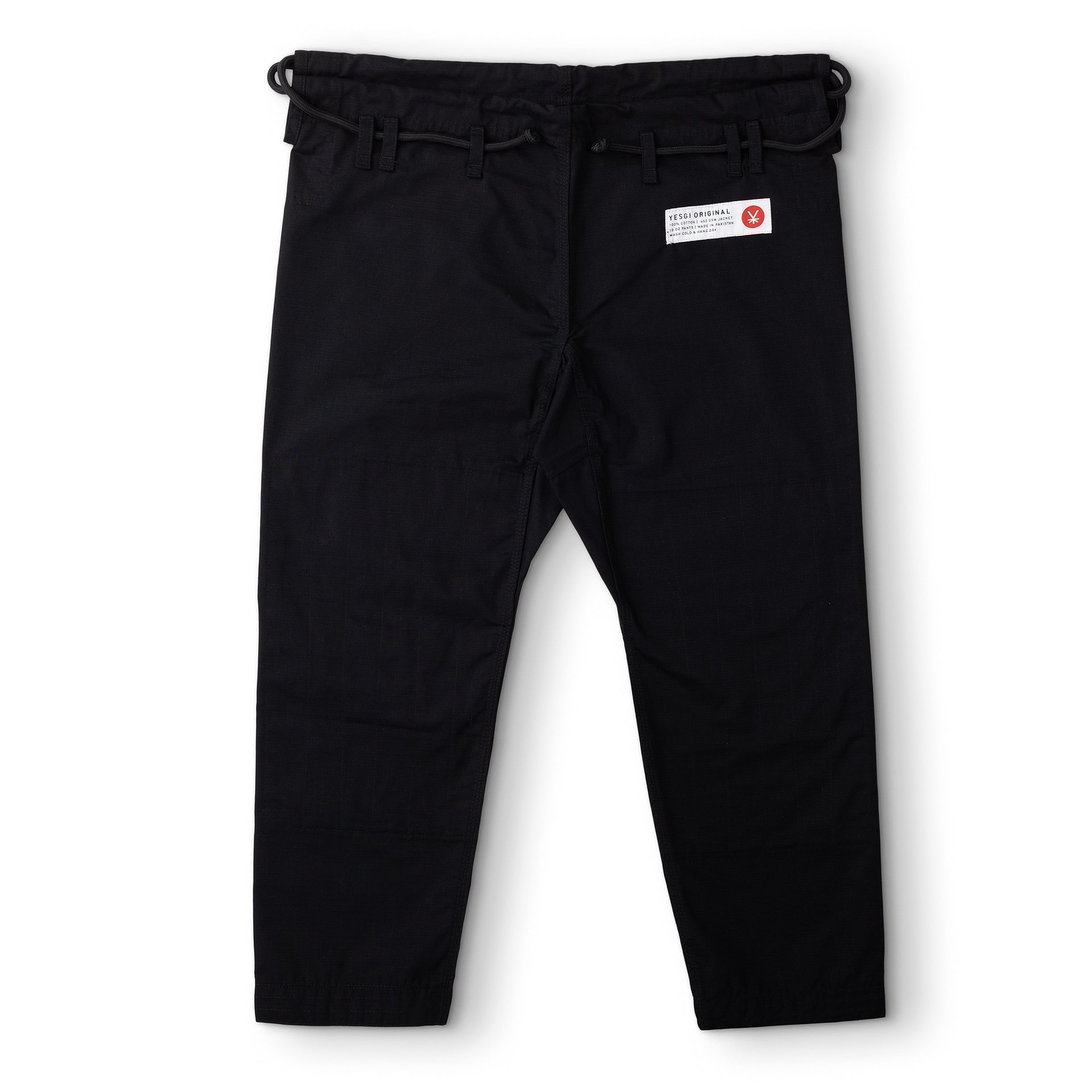 This sleek, all-black gi features a minimalist design with subtle branded patches and no contrasting stitching. It features a mid-weight 450 gsm top paired with 10 oz pants. The pearl weave jacket includes rounded vents and reinforced cuffs and hem, while the ripstop pants come with multiple drawstring loops and reinforced knees.