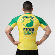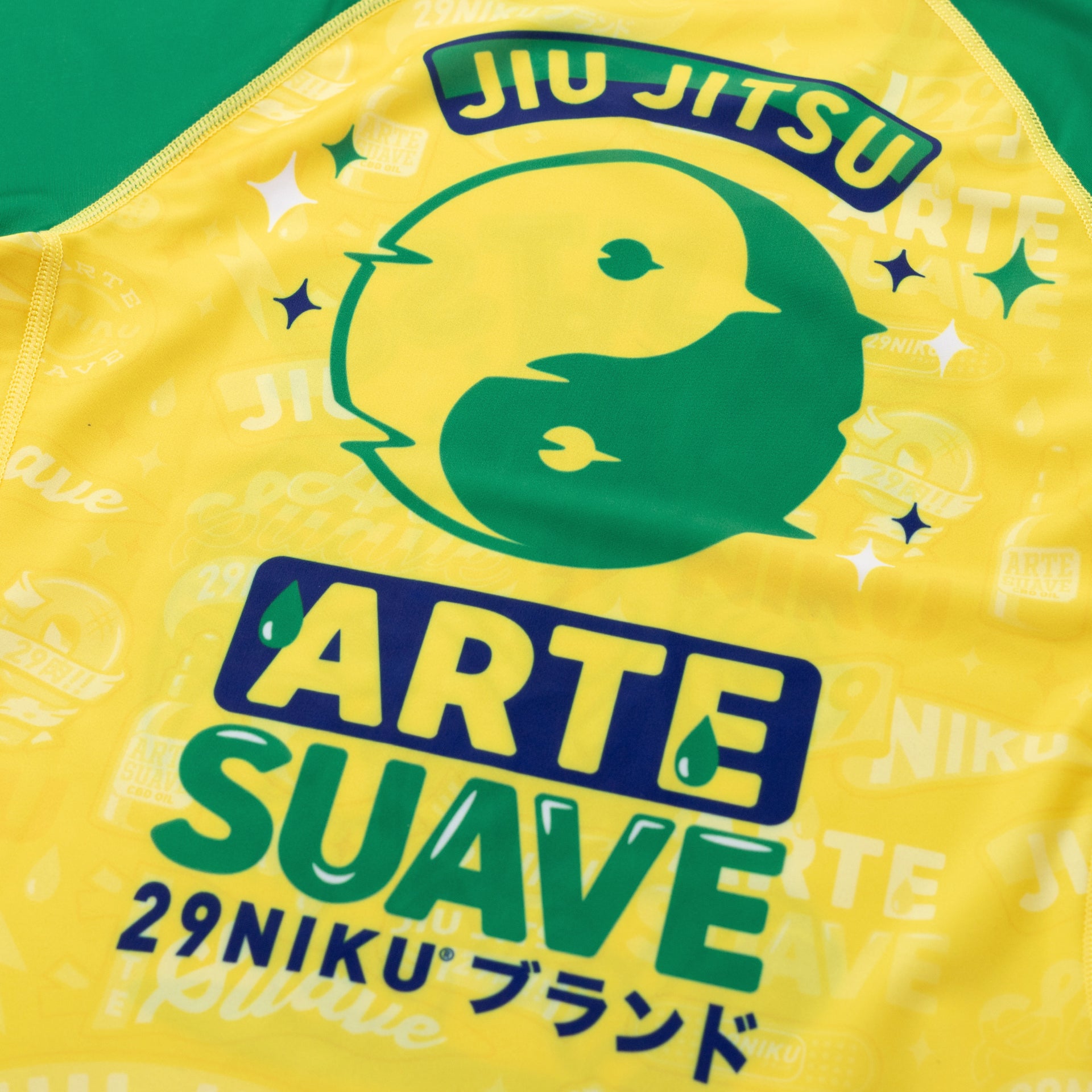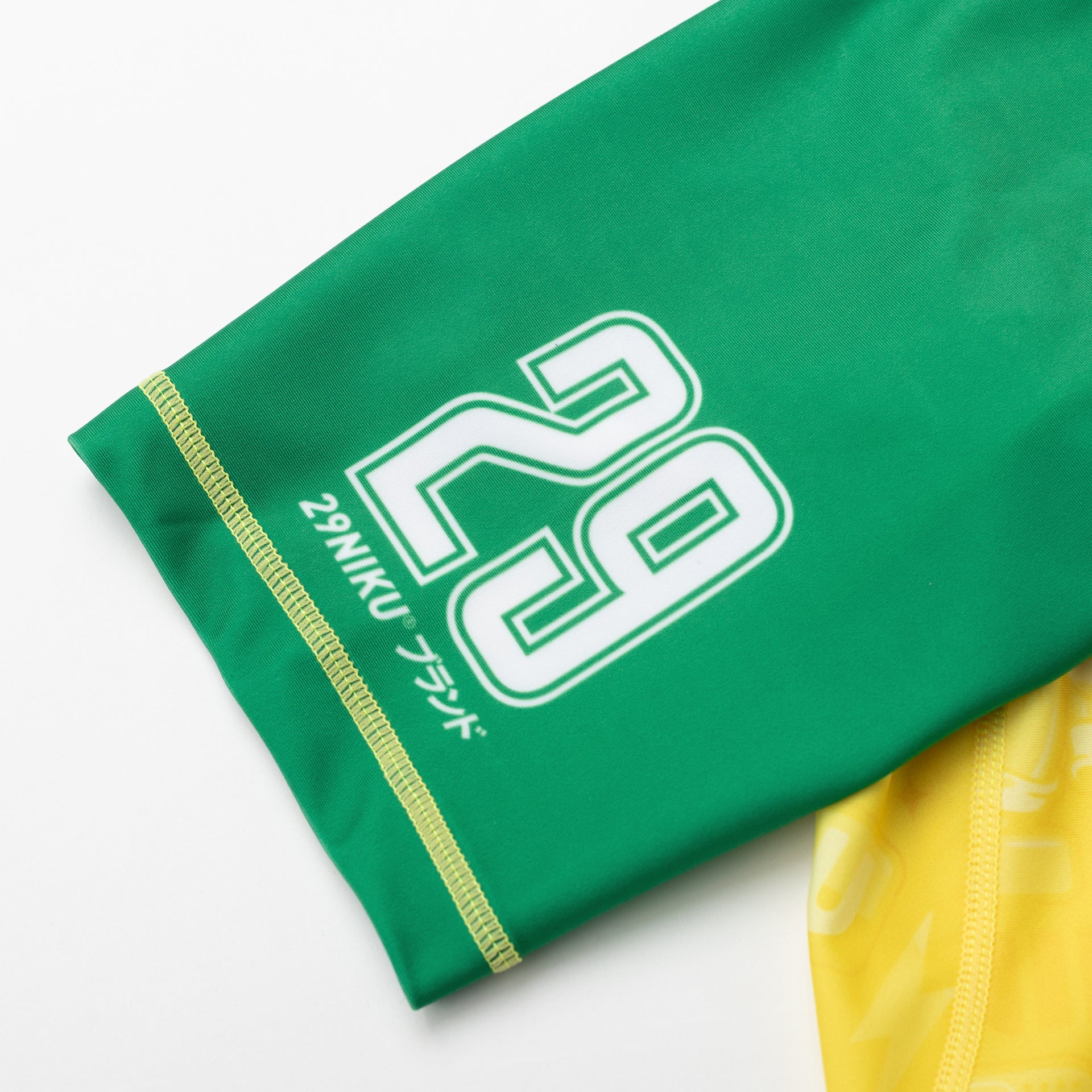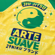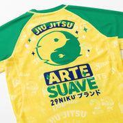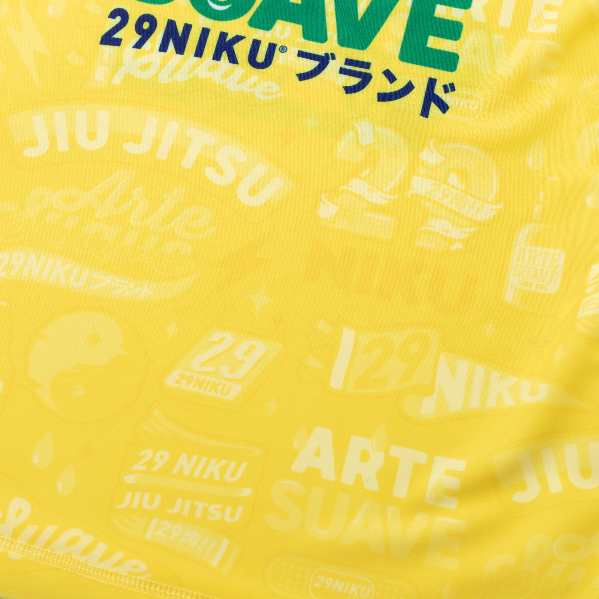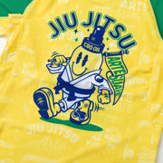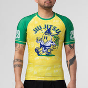 The 29Niku "CBD Oil" rash guard celebrates the essential recovery phase in the art of Jiu Jitsu. It features a cheerful cartoon black belt fresh off his latest training session. Subtle 29Niku branding adds some fresh accents throughout the front and back panels. Crafted from a high-quality poly/spandex blend, this durable nogi top is perfect for any grappling session. If you're after a bold, lively rash guard to spice up your rotation, this one fits the bill.