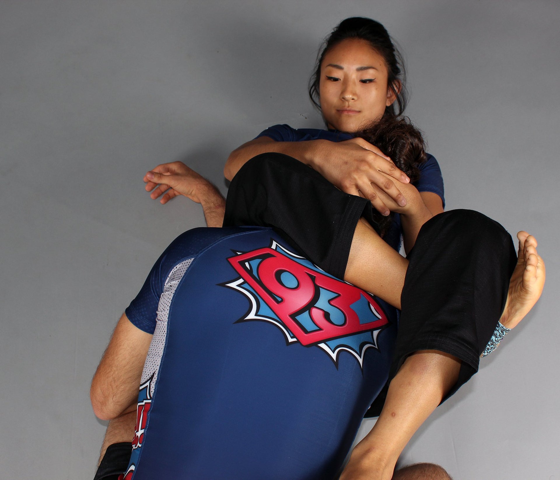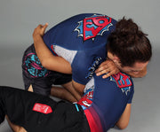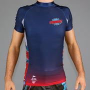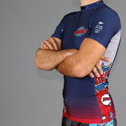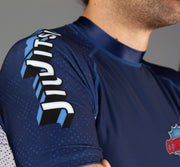 All graphics fully sublimated. Assembled with flexible flatlock stitching and a generous torso length to prevent riding up while rolling. Our newer polyester/spandex blend is more of a matte-finish than our older rash guards, along with a smoother and more consistent compression fit.