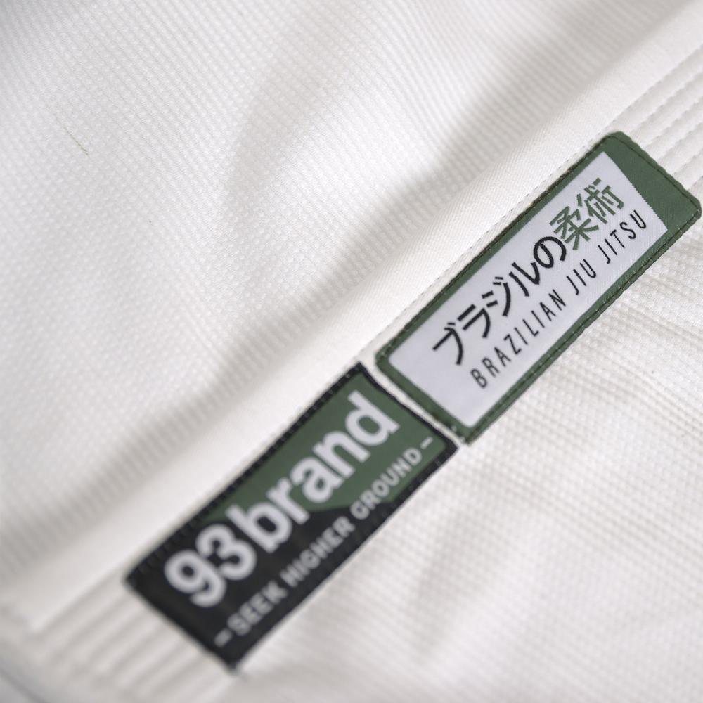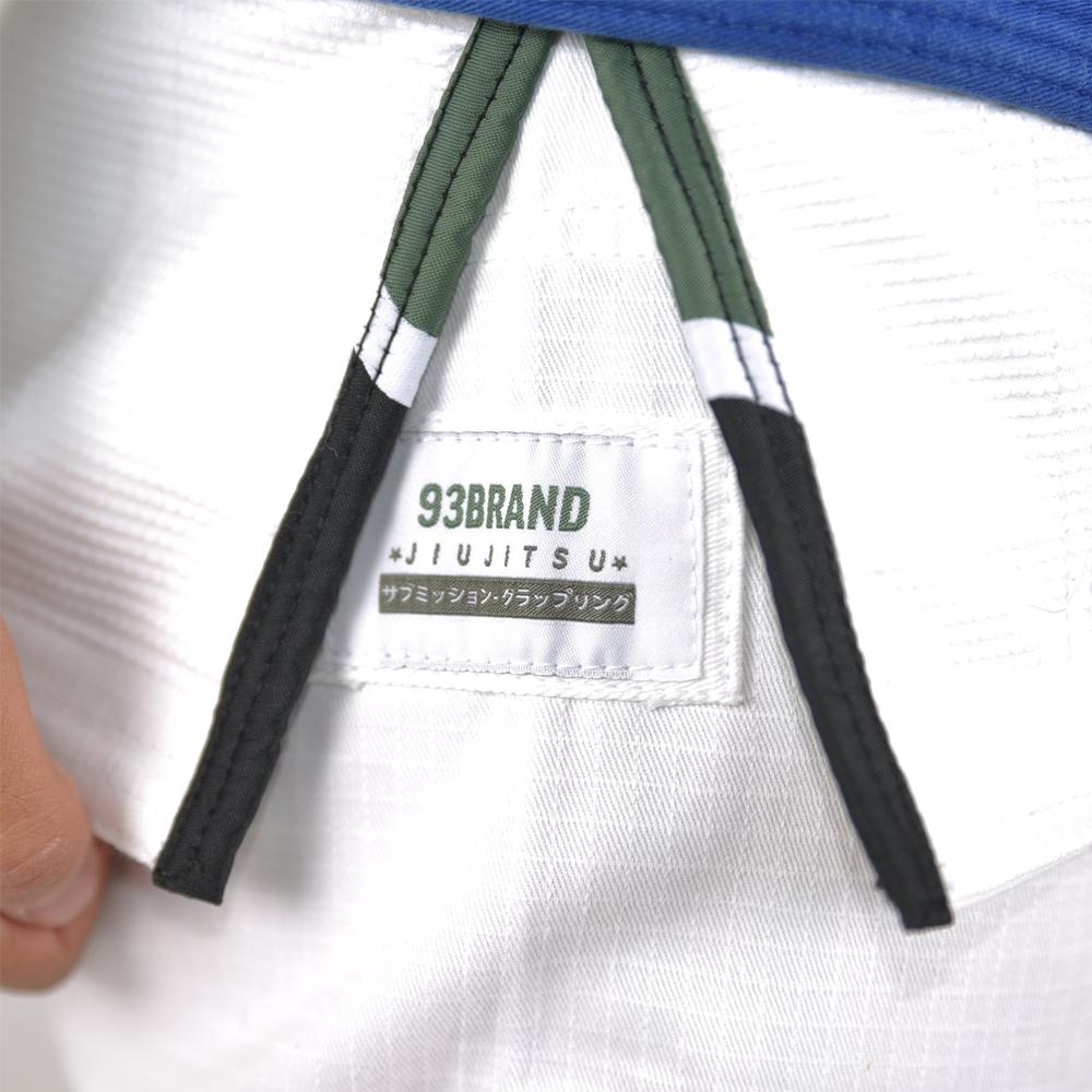 Contrast stitching is limited on this release, appearing only in the triple-stitched yoke seam. Interior shoulder panel is sublimated with an angular light green/black pattern. This premium 93brand kimono also features Interior seam taping, a thicker/wider collar, and full-length knee reinforcements