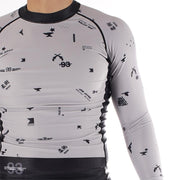 The new "Splatter" Rashguard. Designed with a mashup of various emblems and graphics used throughout previous 93brand releases (including the Art of War dragon, elements of the Graffiti series, the Pistol Grips Gi patch, patterns from the Americana/Brasilia series, and the iconic Goose emblem). This premium rashie features an improved cut with a smoother overall fit and less bunching of materials. The soft 88/12 poly/spandex blend feels great against the skin, with all artwork fully sublimated for the finest detail (100% immune to fading and cracking).