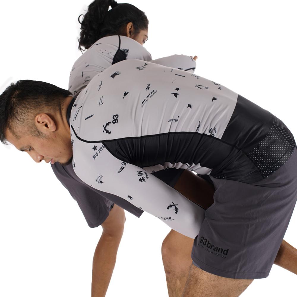 Equipped with 93brand's 7/8 sleeve cut, which supplies compression/warmth/protection to the forearms without impeding your gripping ability (for guillotines, RNC, and heel hooks). 7/8 sleeves also make it more convenient to train with the rashguard under your Gi, since the cuffs won't poke out/get loosened and get caught in sleeve grips. Assembled with strong yet flexible flatlock stitching.