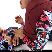 Equipped with 93brand's 7/8 sleeve cut, which supplies compression/warmth/protection to the forearms without impeding your gripping ability (for guillotines, RNC, and heel hooks). 7/8 sleeves also make it more convenient to train with the rashguard under your Gi, since the cuffs won't poke out/get loosened and get caught in sleeve grips. Assembled with strong yet flexible flatlock stitching.