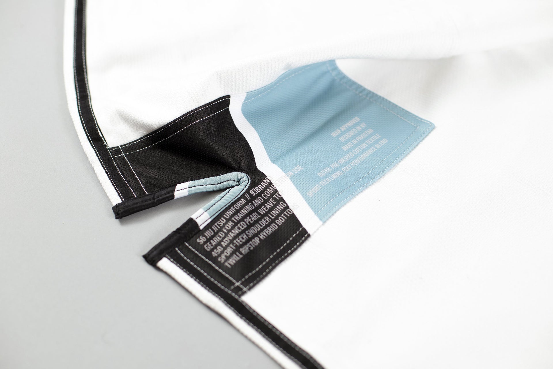 New IBJJF-approved installment from our SS series. With unique mounted patches and quality embroideries throughout. Side vents and pant loops use a unique multi-color pattern.