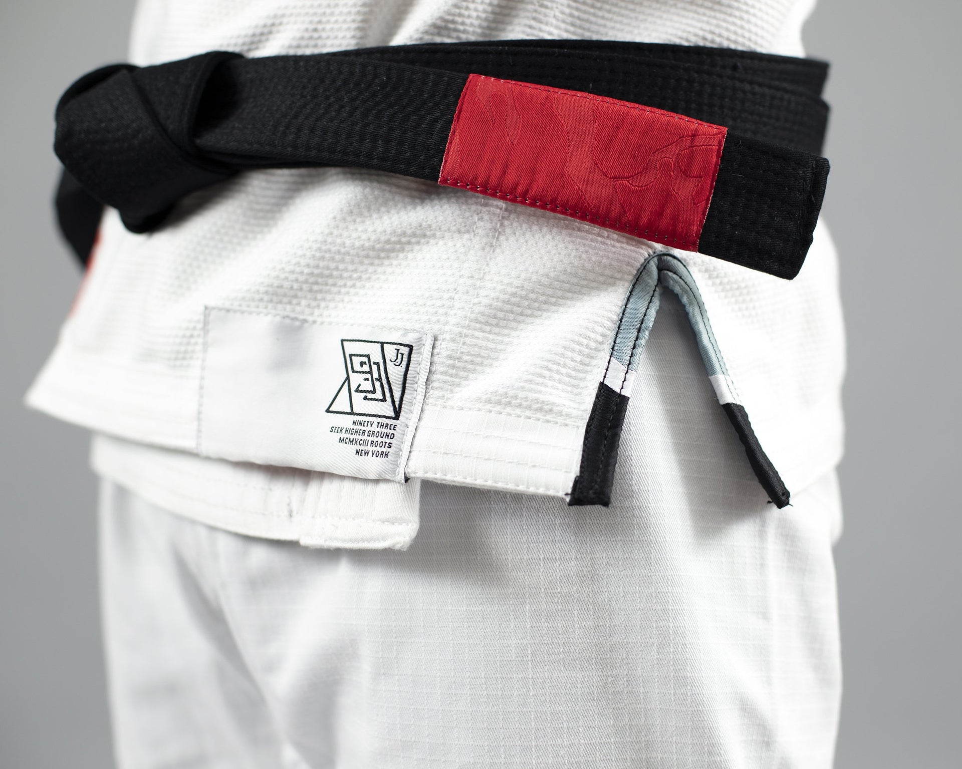 Interior shoulder panel is sublimated for lighter weight and added comfort. This premium 93brand kimono also features Interior seam taping, a thicker/wider collar, and full-length knee reinforcements