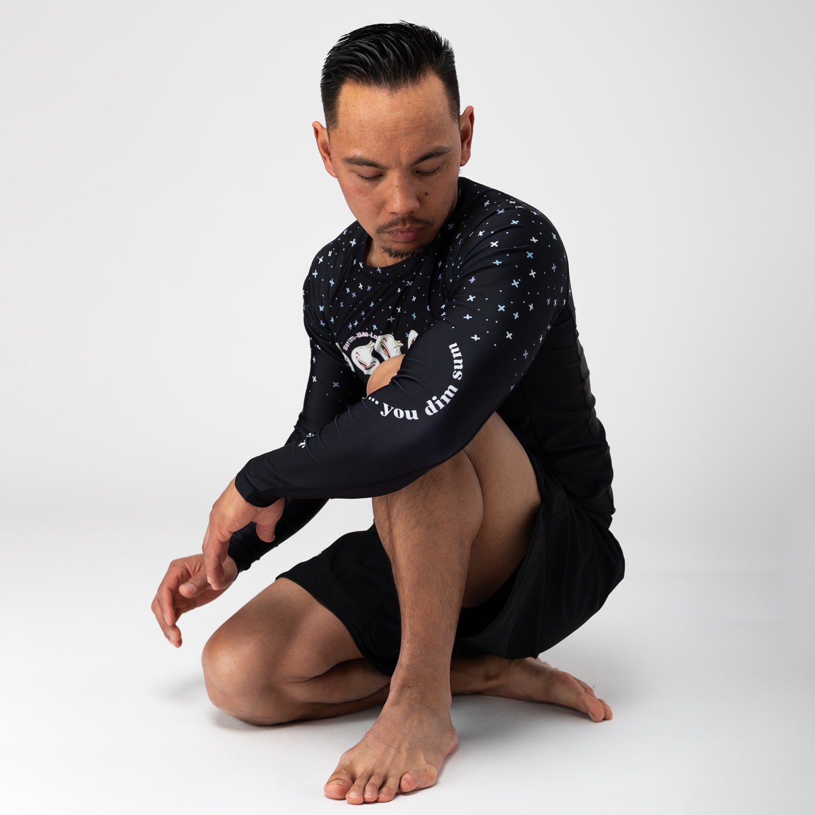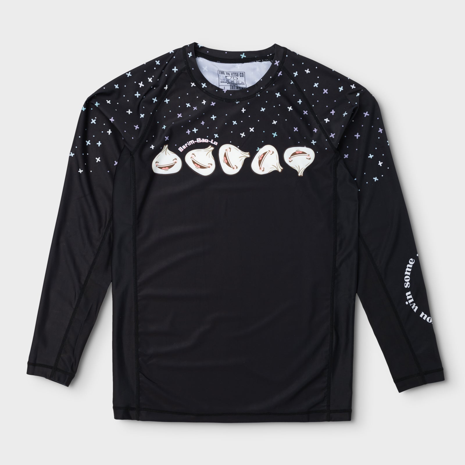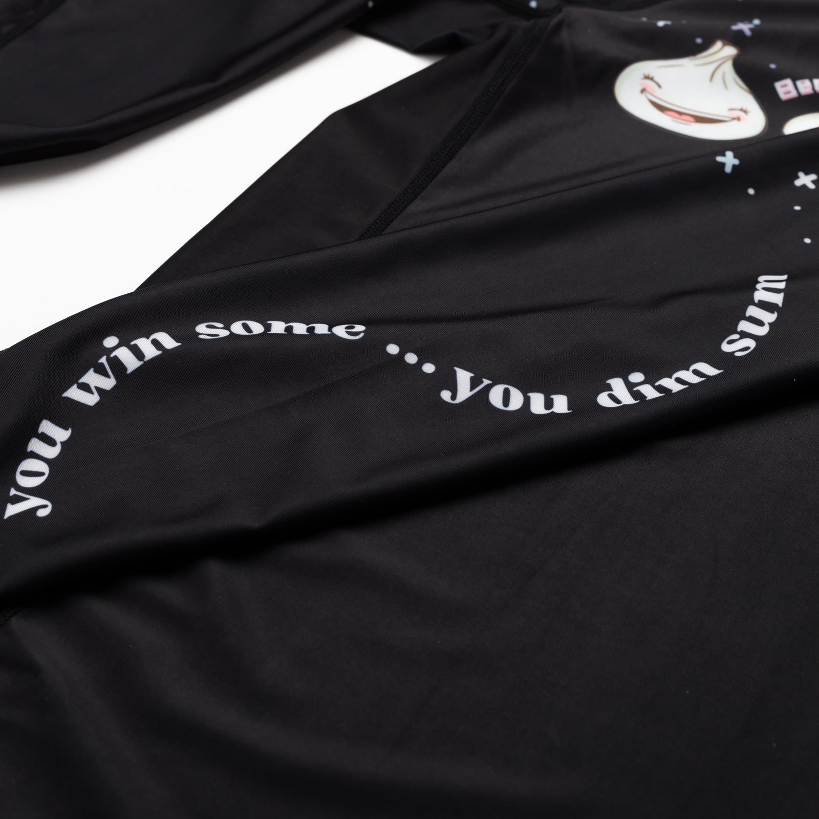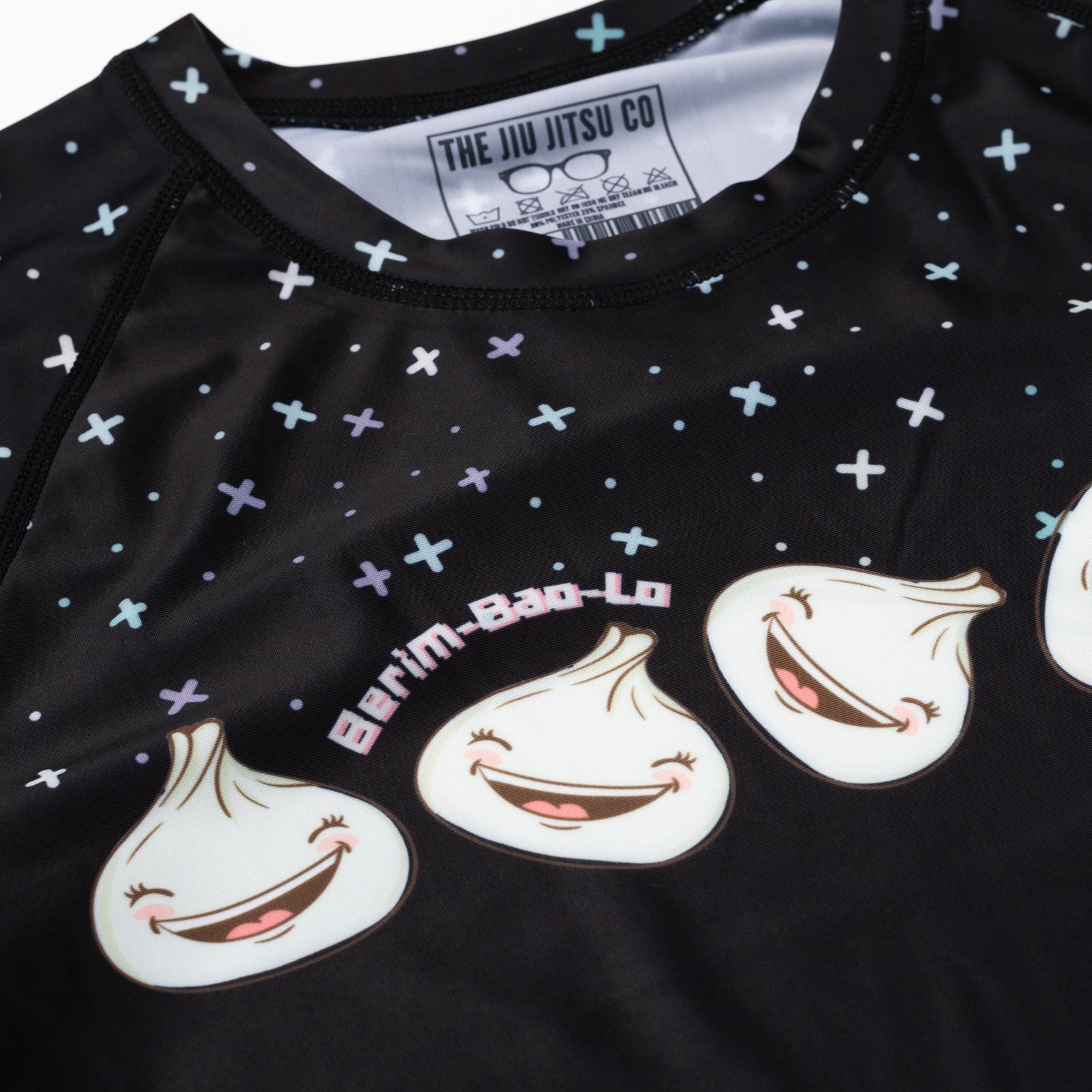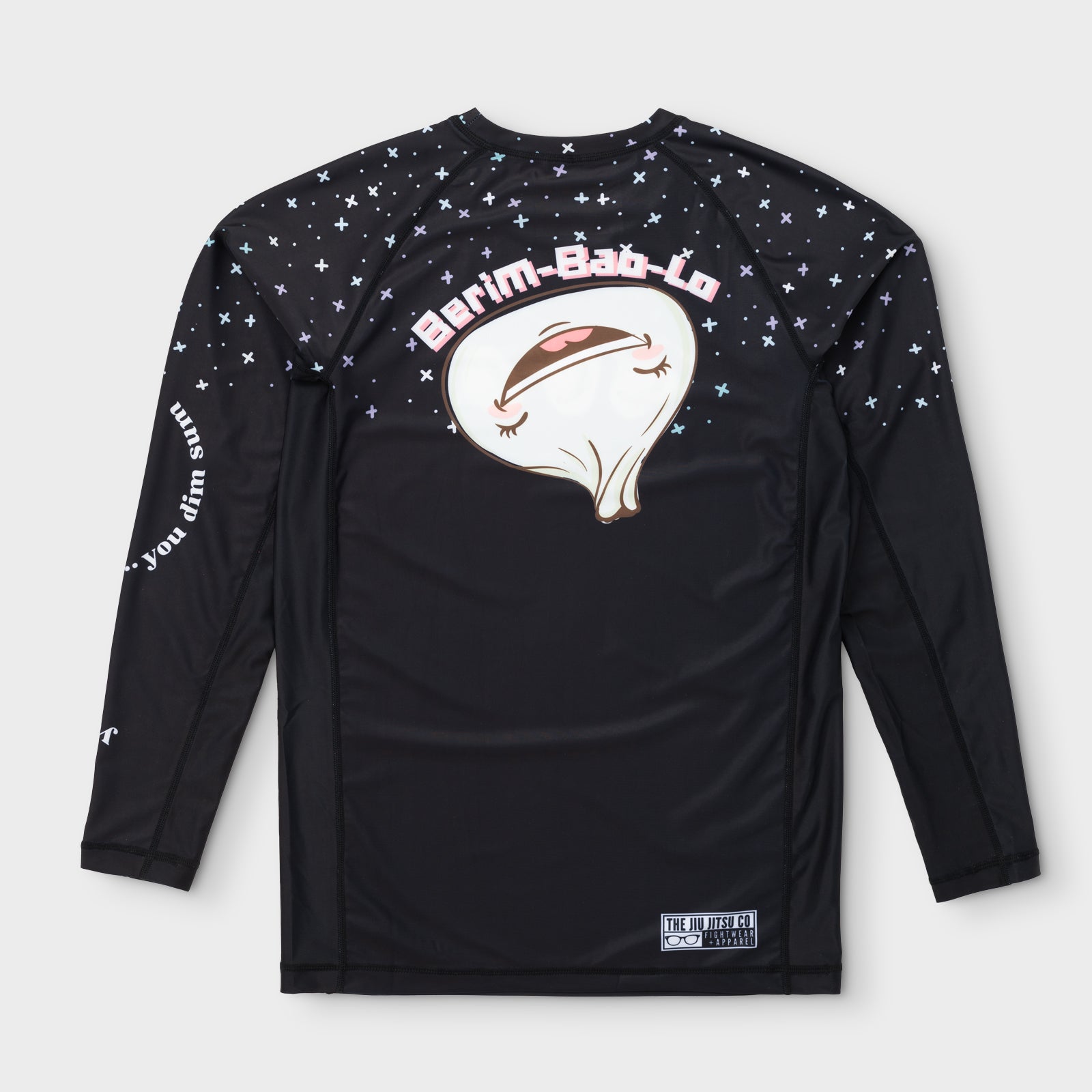 Master the art of inversion with the Berim-Bao-Lo Rash Guard. Featuring a bao dumpling performing a berimbolo on the front panel and an upside-down bao on the back. This nogi top has a premium compression fit with all the essential specs.