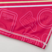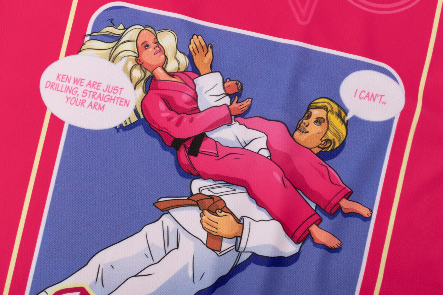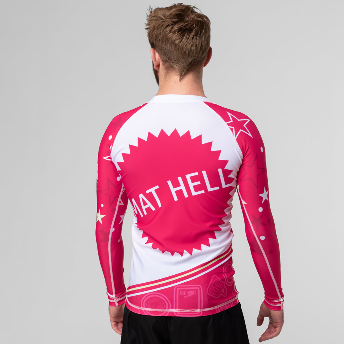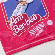 The Arm Bar-Bee rash guard from Continuous flow is a nod to everyone's favorite blonde Jiu Jitsu practitioner. Made with a thicker, longer lasting more breathable lycra. Sharp sublimated graphics and a nice variety of branding that's blended well throughout.