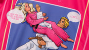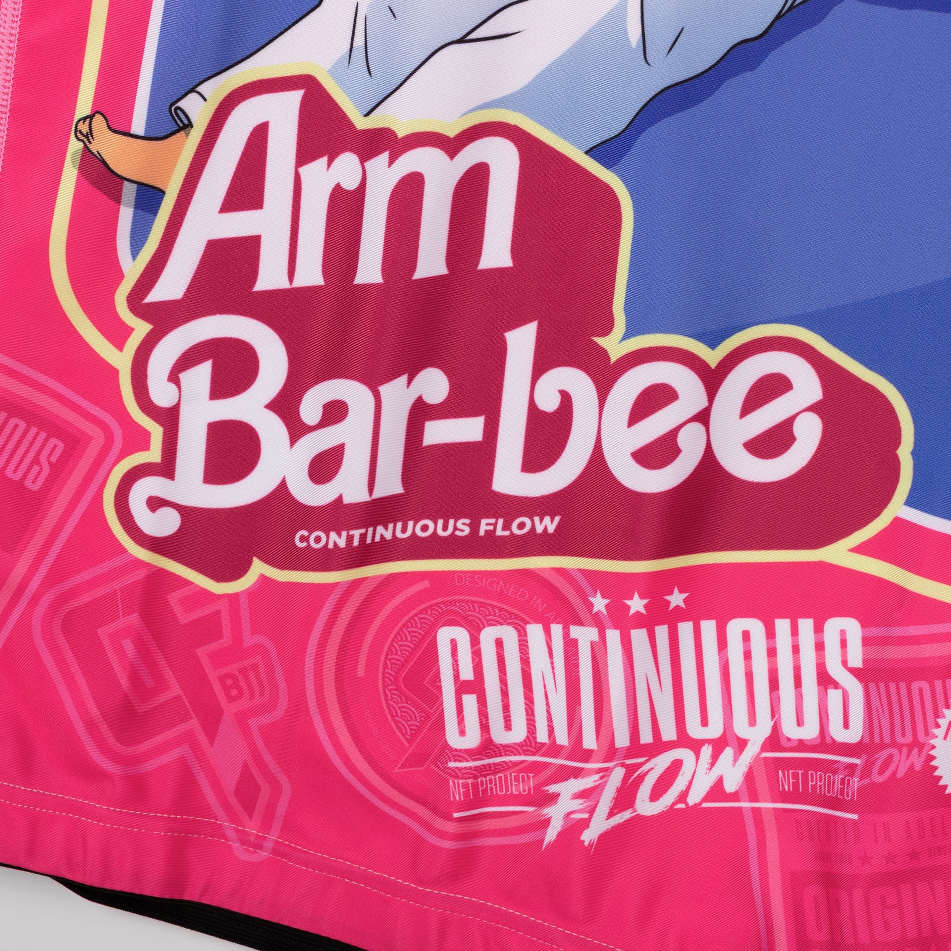 The Arm Bar-Bee rash guard from Continuous flow is a nod to everyone's favorite blonde Jiu Jitsu practitioner. Made with a thicker, longer lasting more breathable lycra. Sharp sublimated graphics and a nice variety of branding that's blended well throughout.