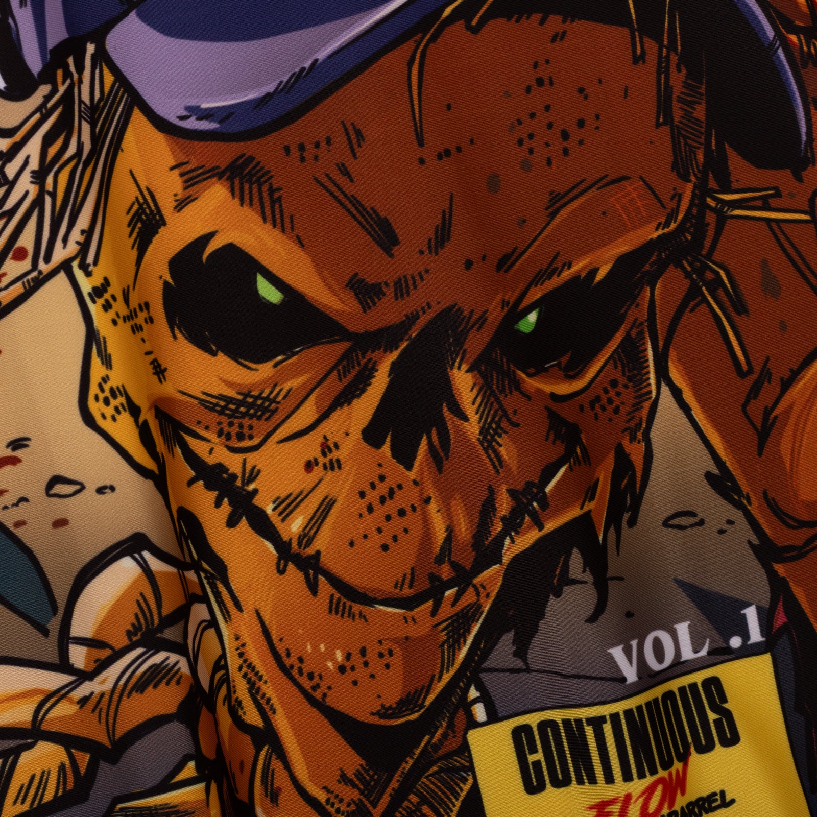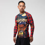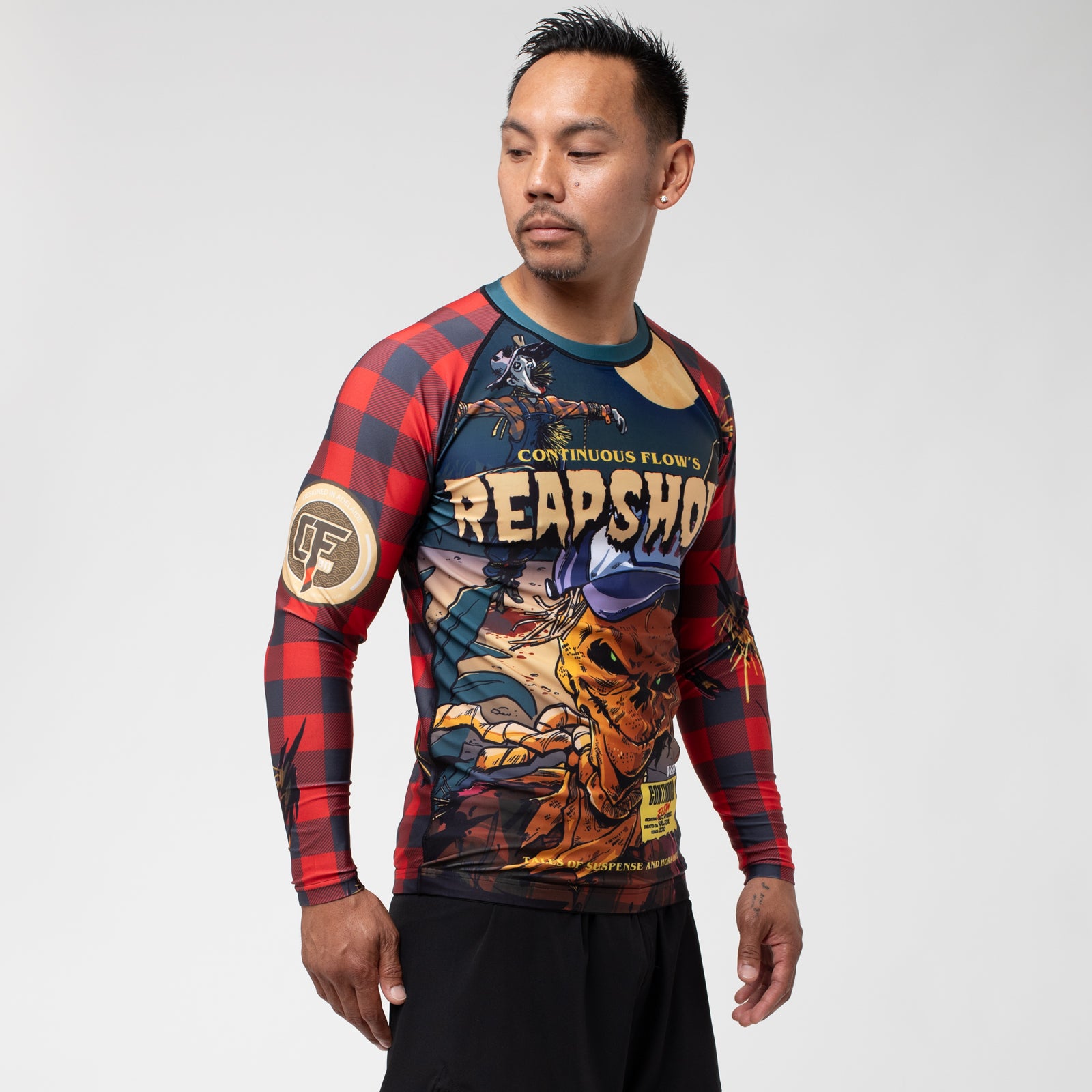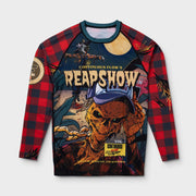 The Reapshow rash guard has sharp graphics and a fun look. If you're looking for a nogi top that stands out, this is the one. This rash guard is made with a solid Poly/Spandex blend with secure flatlock stitching. It includes a grip lining at the waist interior to prevent the rash guard from riding up while you're training.
