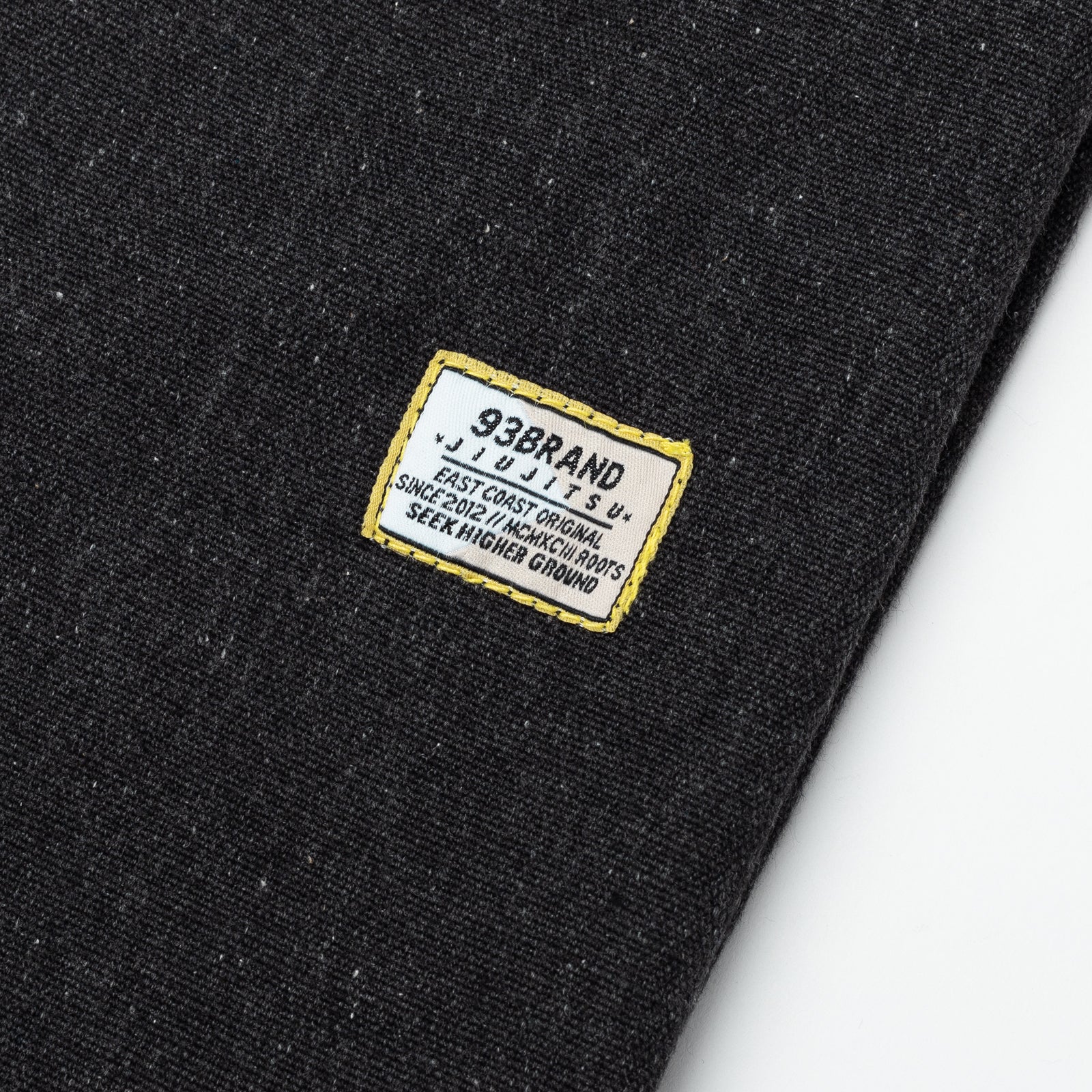 Since the traditional training Gi is intended for maximum mobility, the fit tends to be more boxy than you'd find in your wardrobe at home. So 93brand modified each size to make these pants more form-fitting. After taking into consideration which body type each Gi is suited for, the fit was adjusted by slimming the legs and tapering the fit toward the bottom cuff. While BJJ Gis typically have a roomy crotch for maximum guard play and takedowns, it's a bit much for casual use, and isn't particularly flattering on your booty. So the crotch has been elevated and the gusset was modified accordingly.