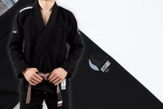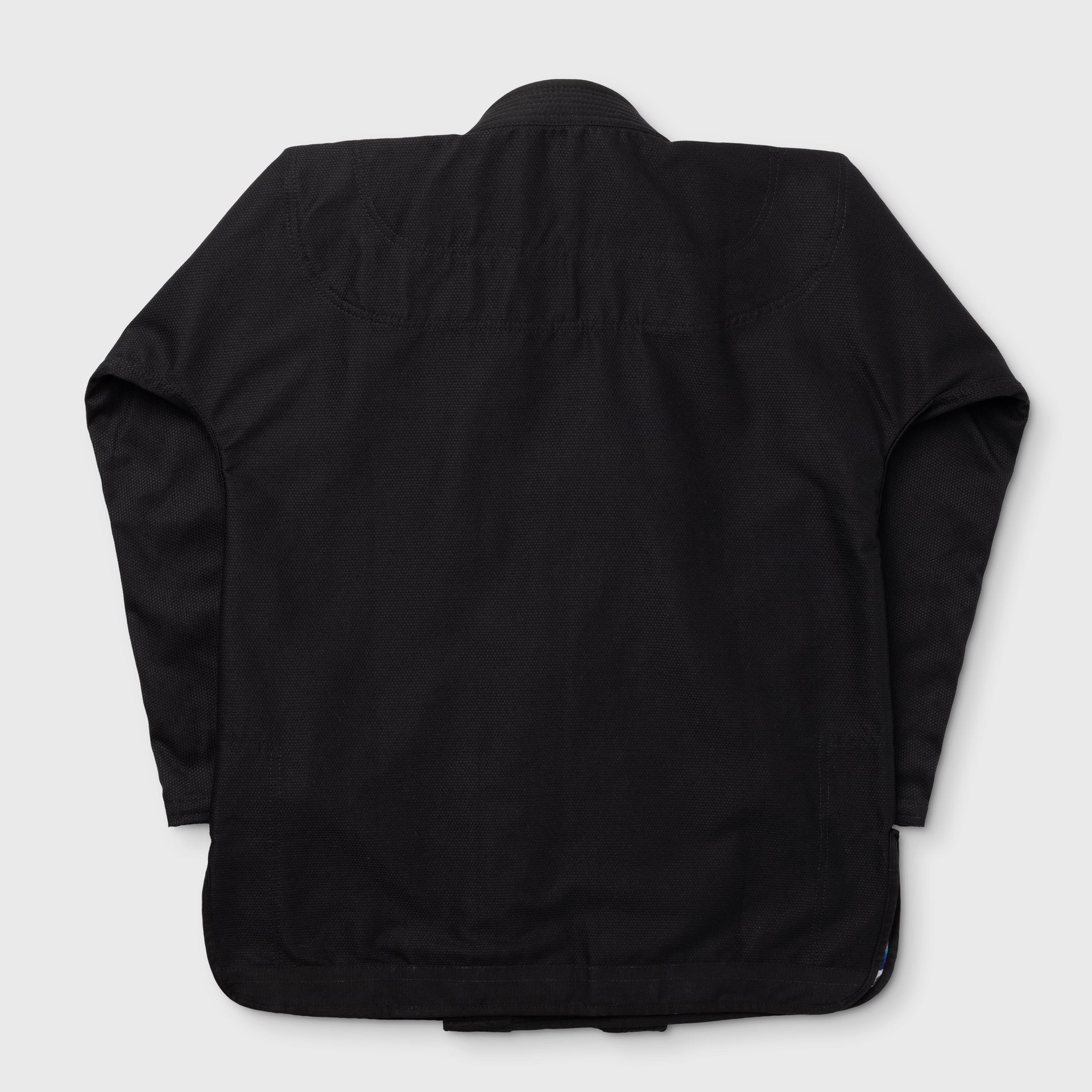 All white stitching for a clean finish, with black and sage green trim. Thin rounded piping runs uninterrupted along the jacket hem right up the connected round vent cut. Full-length knee reinforcements assure that your pants are as sturdy as they can be, extended beyond the point that typical Gi pants cease reinforcement (that area where your opponent grabs bull-fighter passing grips.