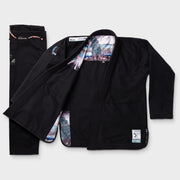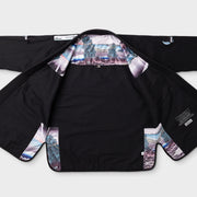 Inspired by centuries old Japanese woodblock artwork, the "Dawn" series is available in white and black. Featuring a sublimated rendition of classic ukiyo-e woodblock artwork. . The soft sublimated panels consist of a breathable poly blend mesh so it's not stiff or uncomfortable even once soaked with sweat. Kitsune uses a thicker collar insert (EVA foam) so it's no walk in the park for your opponent to grab a mean collar grip or worm grip.