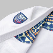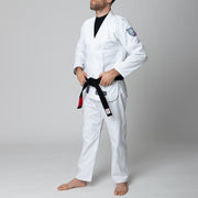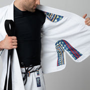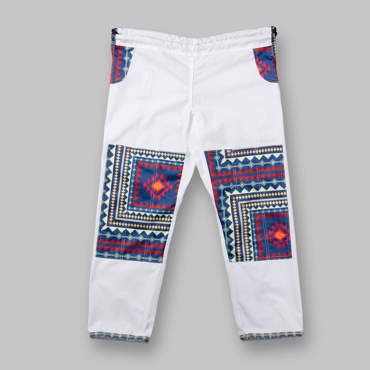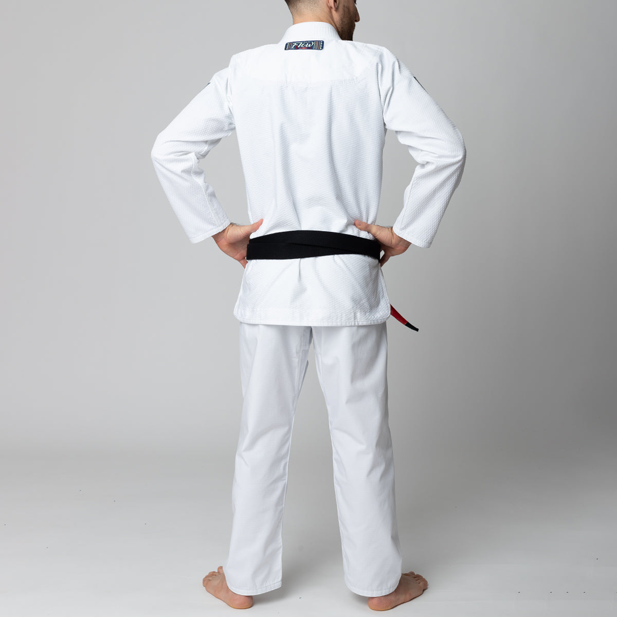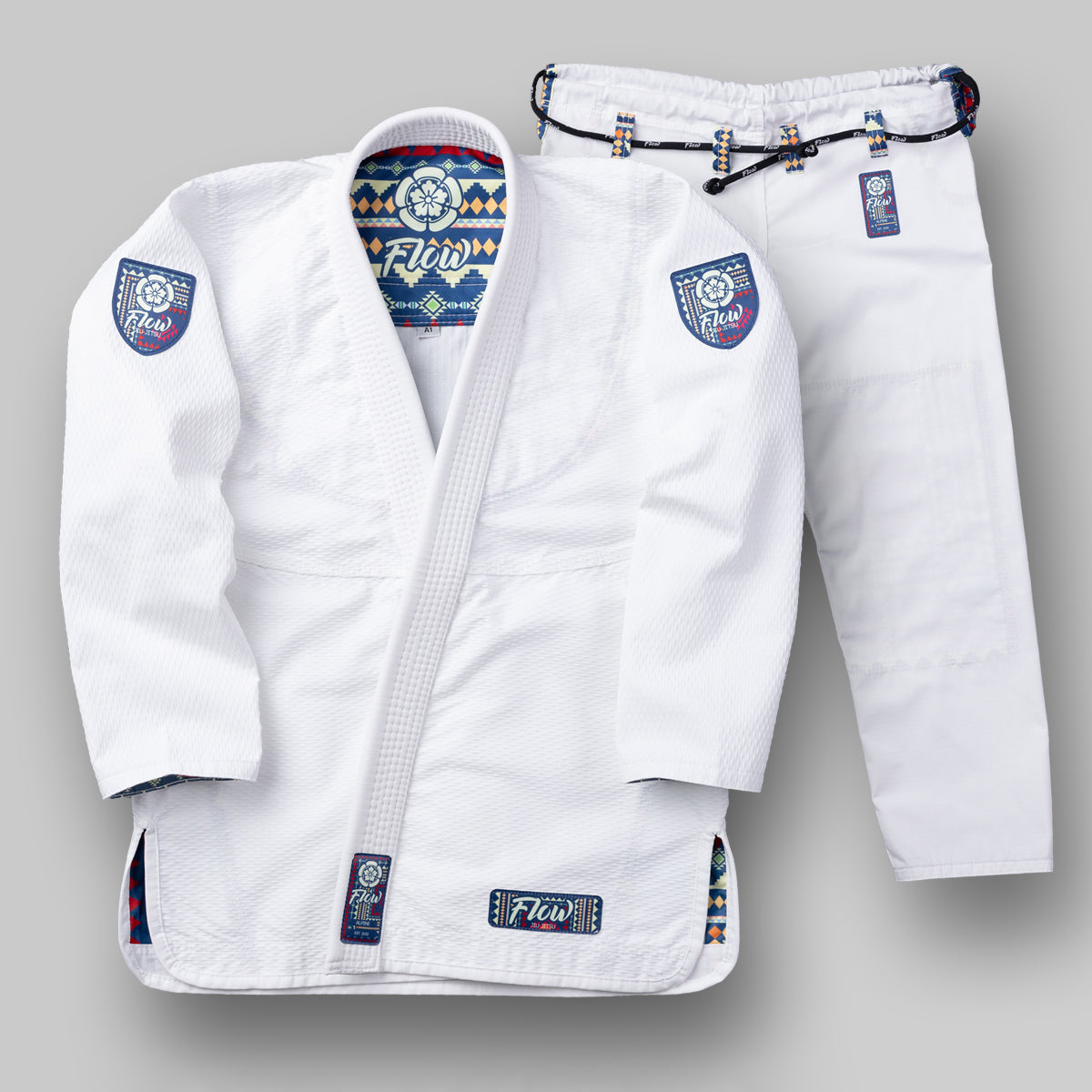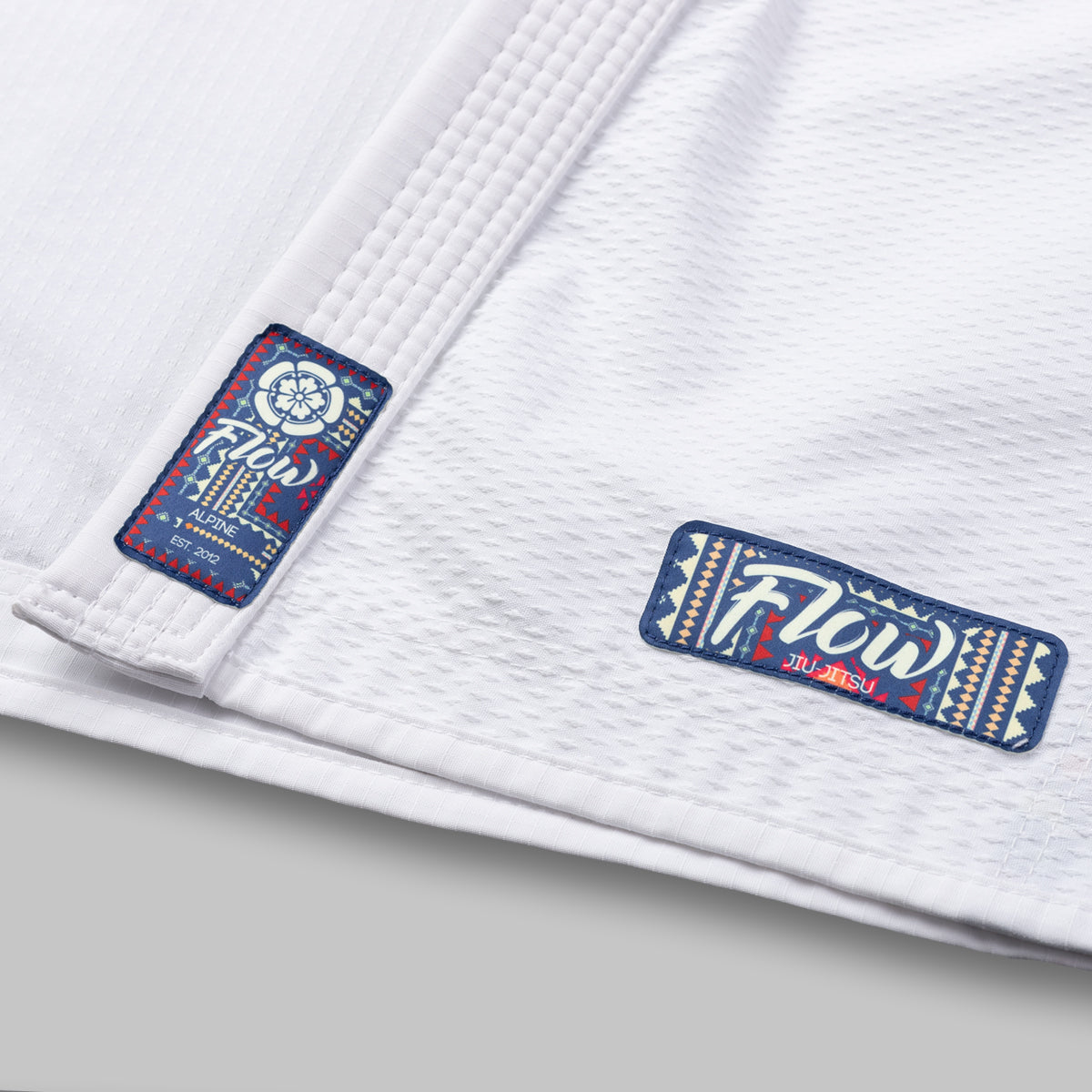 The Alpine Pro 2.10 from Flow Kimonos is made with a light and breathable diamond weave jacket that's 100% combed cotton. The fabric is durable, lightweight, and designed to wick away sweat. The pants are constructed with ripstop material and feature a comfortable interior lining at the knees.