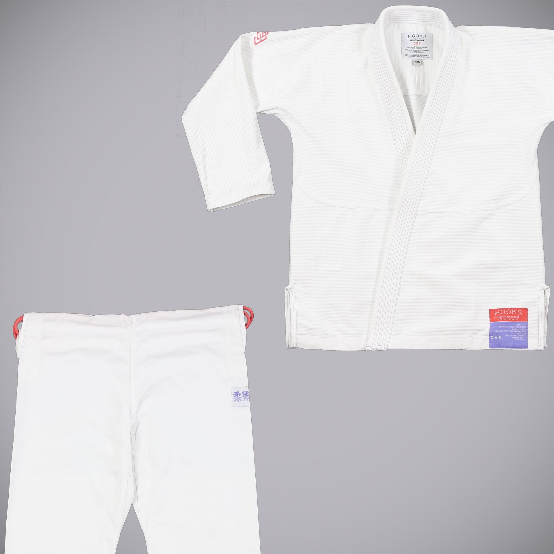 Featuring the 425 GSM Advanced Pearl jacket, which is more resilient and more resistant to shrinkage than the 1st and 2nd wave of Hooks Gis. Paired up with breathable 8oz cotton twill trousers (full-length knee reinforcements for more reliable coverage).