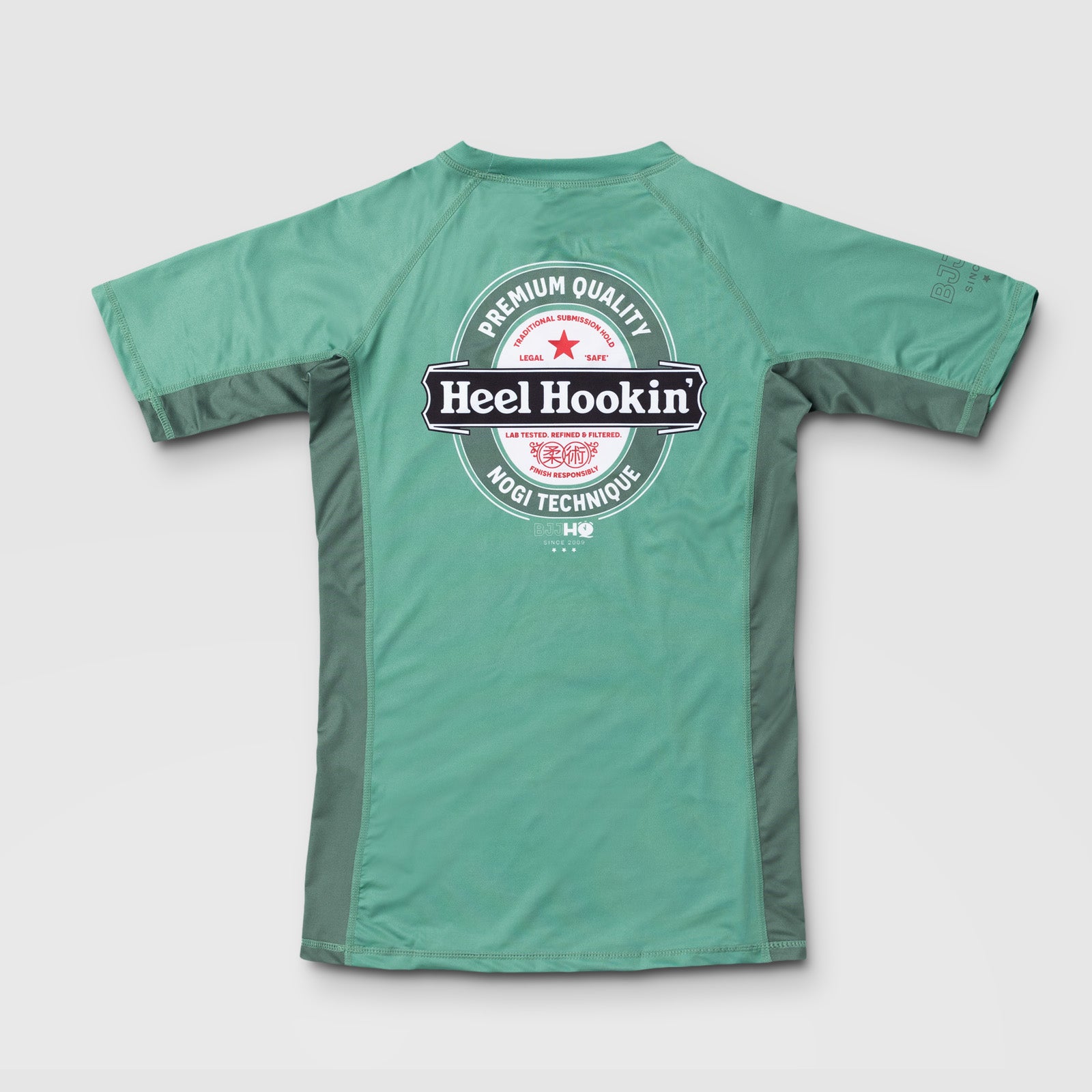 BJJHQ delivers a high-performance NoGi rash guard designed for heel-hooking enthusiasts who appreciate both style and function. Crafted from a polyester-Spandex blend, it provides a lightweight compression fit with a soft, breathable feel. The fully sublimated graphics ensure lasting vibrancy, resisting fading even after intense training. If you're looking for funny BJJ rash guards that bring some humor to the mats, this design has you covered.