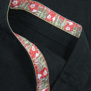 Custom ribbon jacket edge and inside pant and sleeve loop.