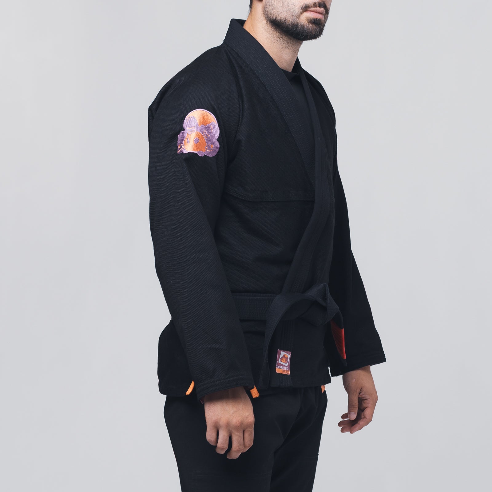 Crafted from durable 280 GSM Pearl Weave, this gi stands up to tough rolls with reinforced stitching for lasting wear. Breathable and moisture-wicking to keep you cool, with bold orange and purple accents for a playful edge.
