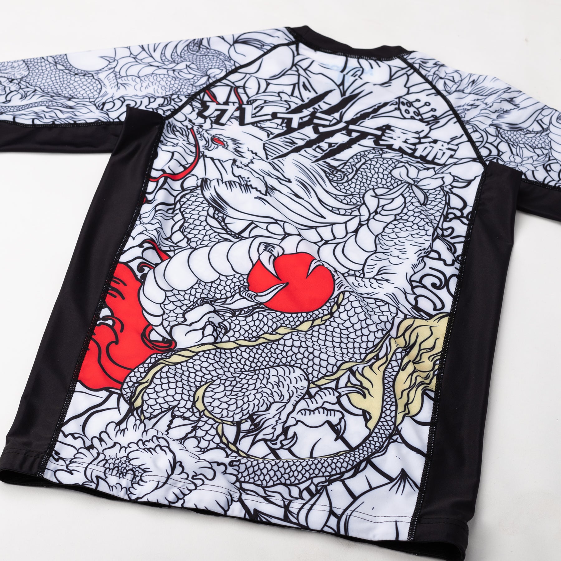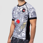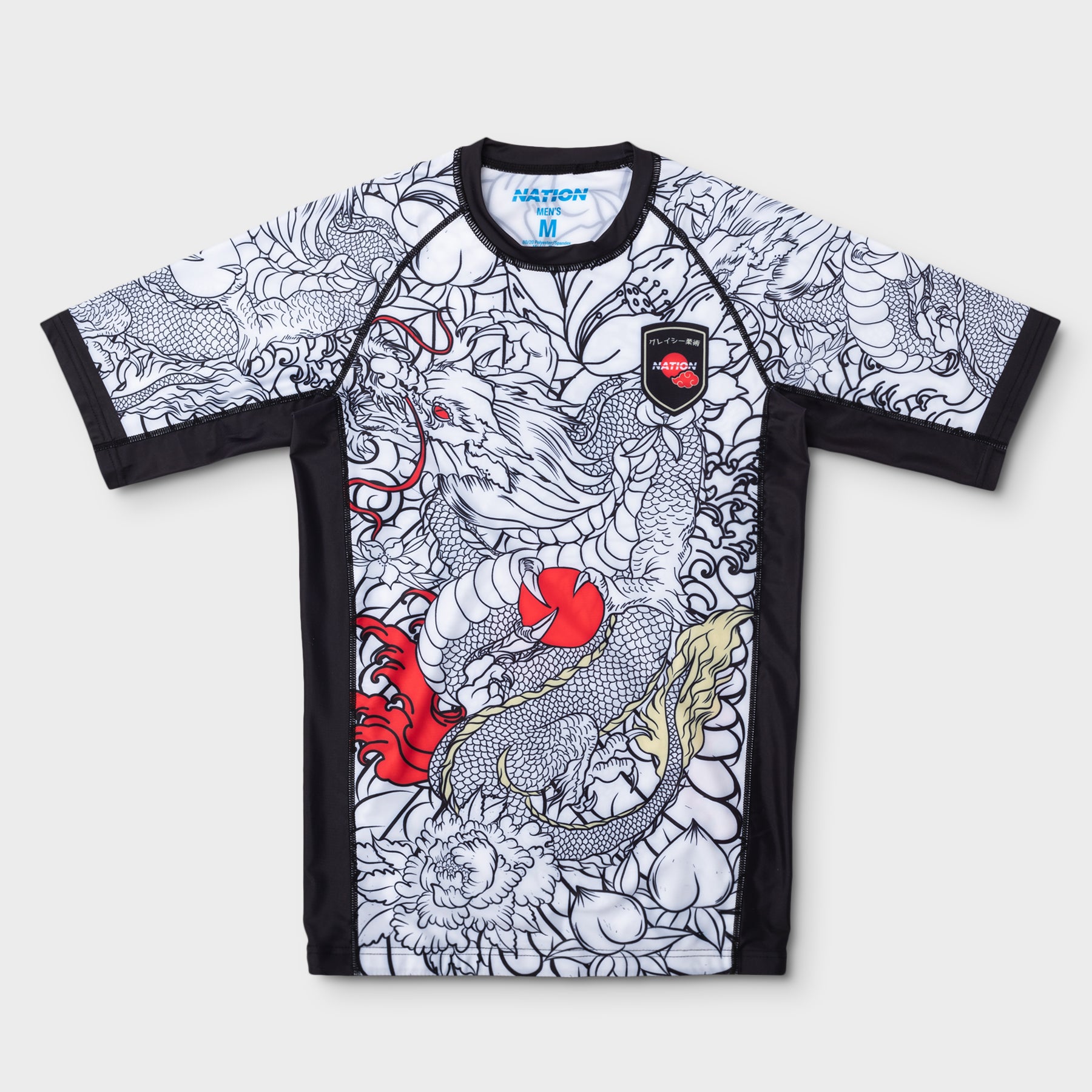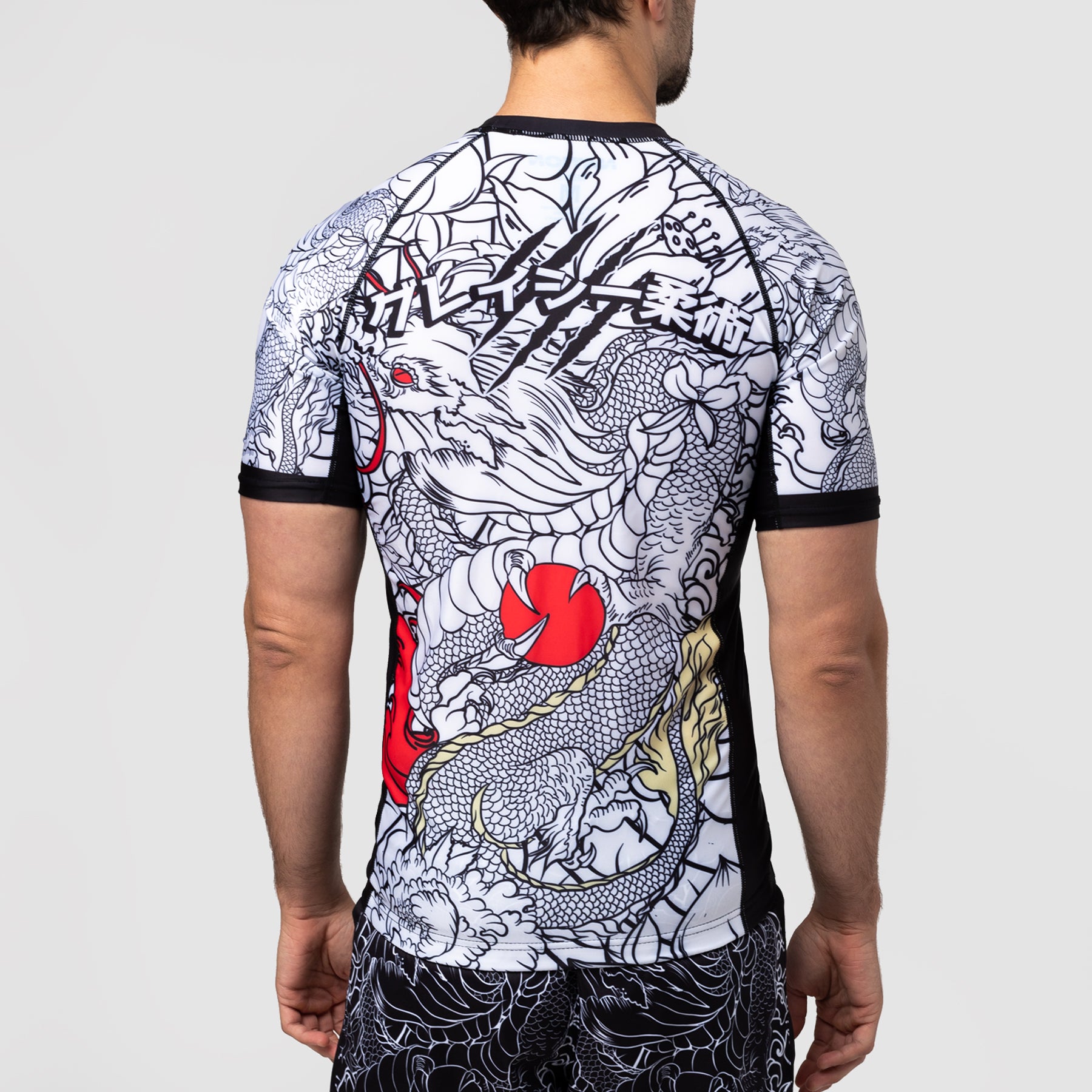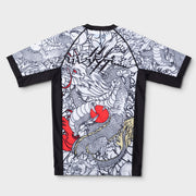 The Rising Dragon design embodies the spirit of ascension and progress. Inspired by Yakuza-style tattoos, these beautiful designs symbolize triumph over adversity. All artwork is fully sublimated into the fabric, providing a long lasting, sharp look. The material offers a nice stretch and a soft feel, making it an excellent choice for Nogi Jiu Jitsu. *Note: the model is 6'1" 175 lbs wearing sizing medium.