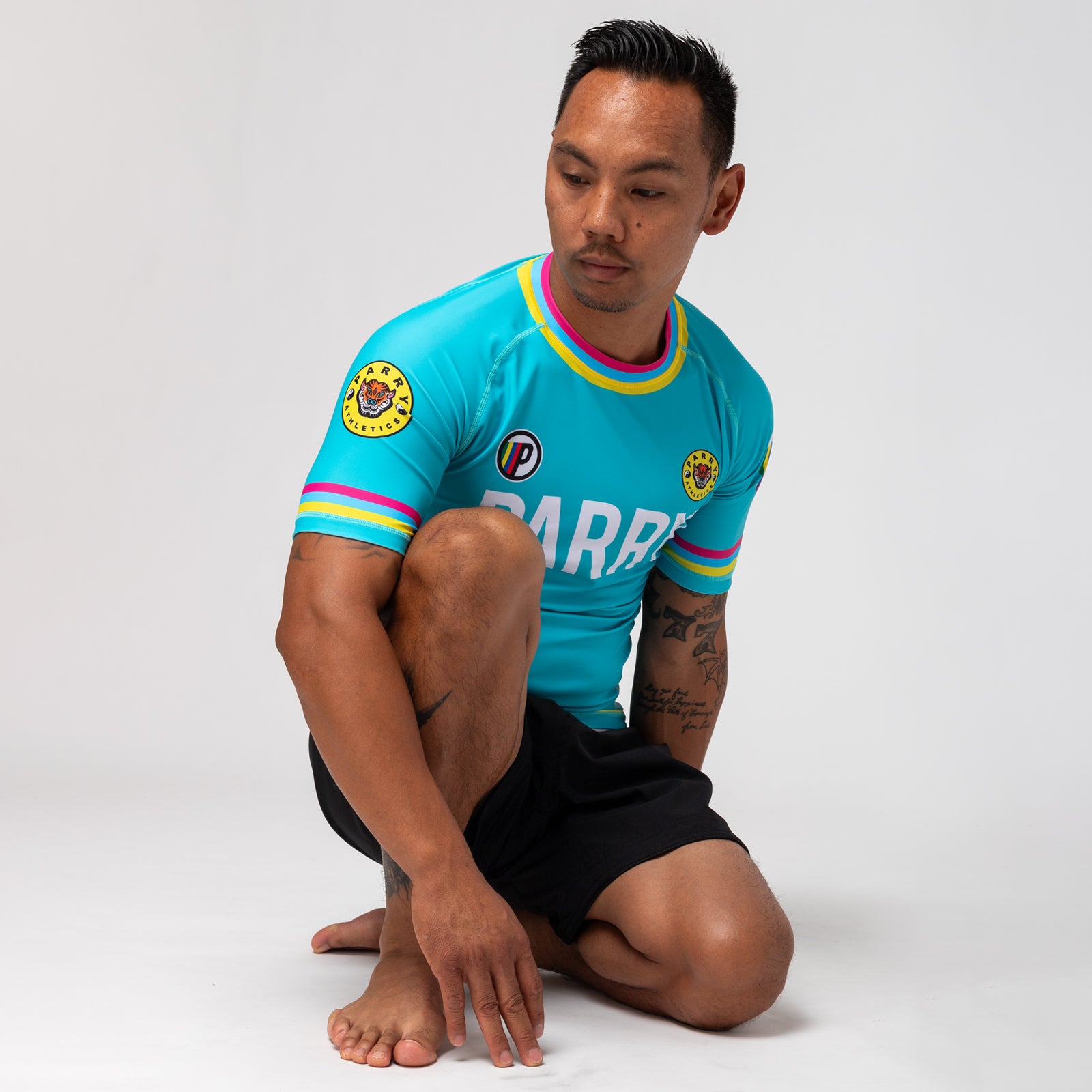 PARRY "Tiger" Turquoise Short Sleeve Rash Guard