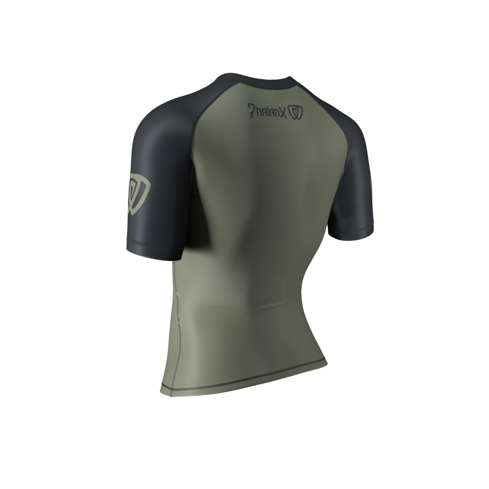 The Phalanx "King Olive" short sleeve rash guard is designed with the athlete in mind. It features sublimated designs that will never crack or fade, moisture-wicking fabric to keep you dry during your workout, flat lock stitching for superior comfort and durability, and SPF protection to stay safe in the sun.