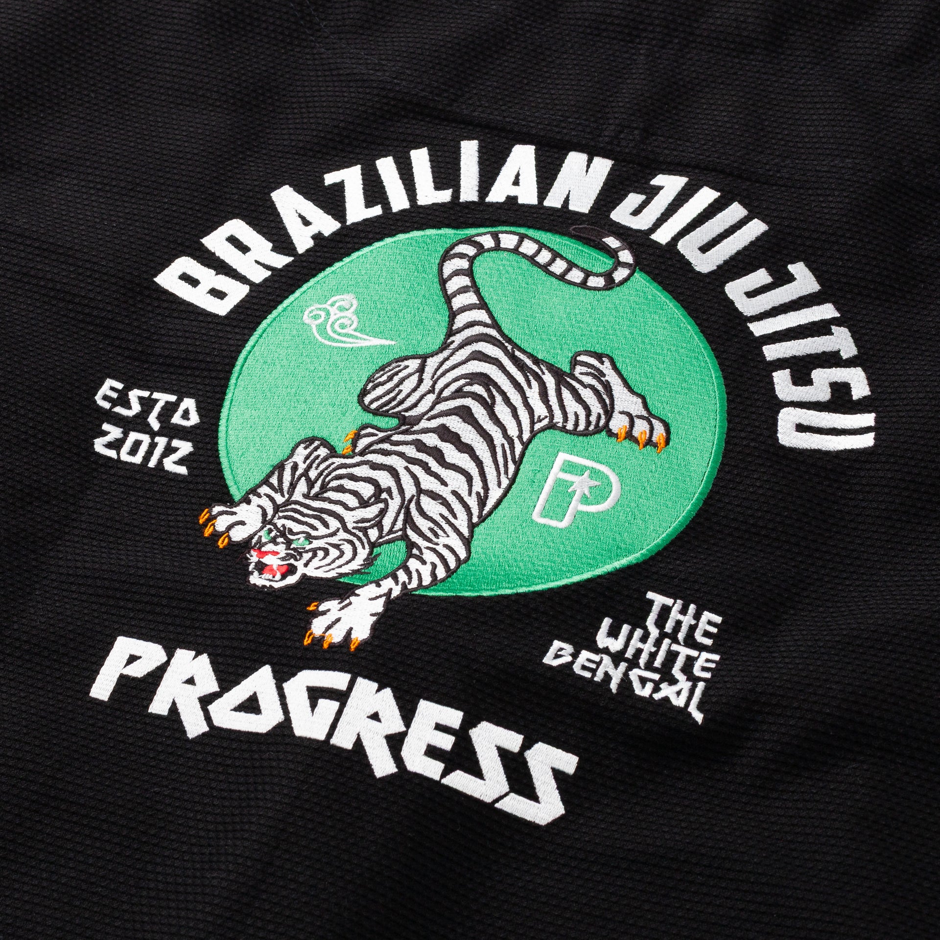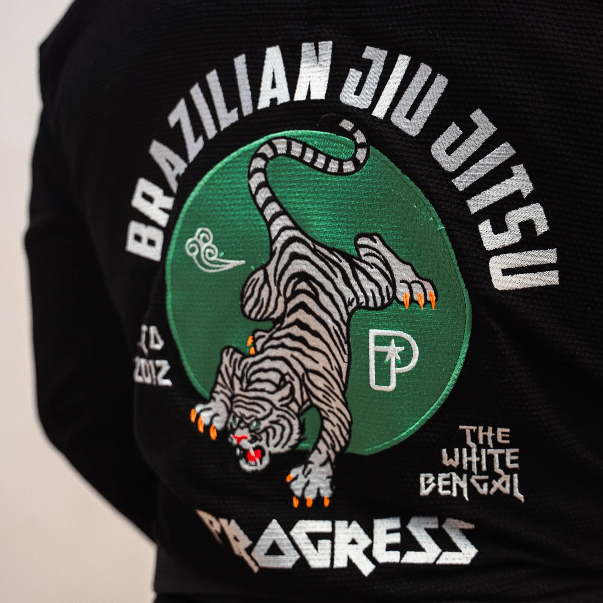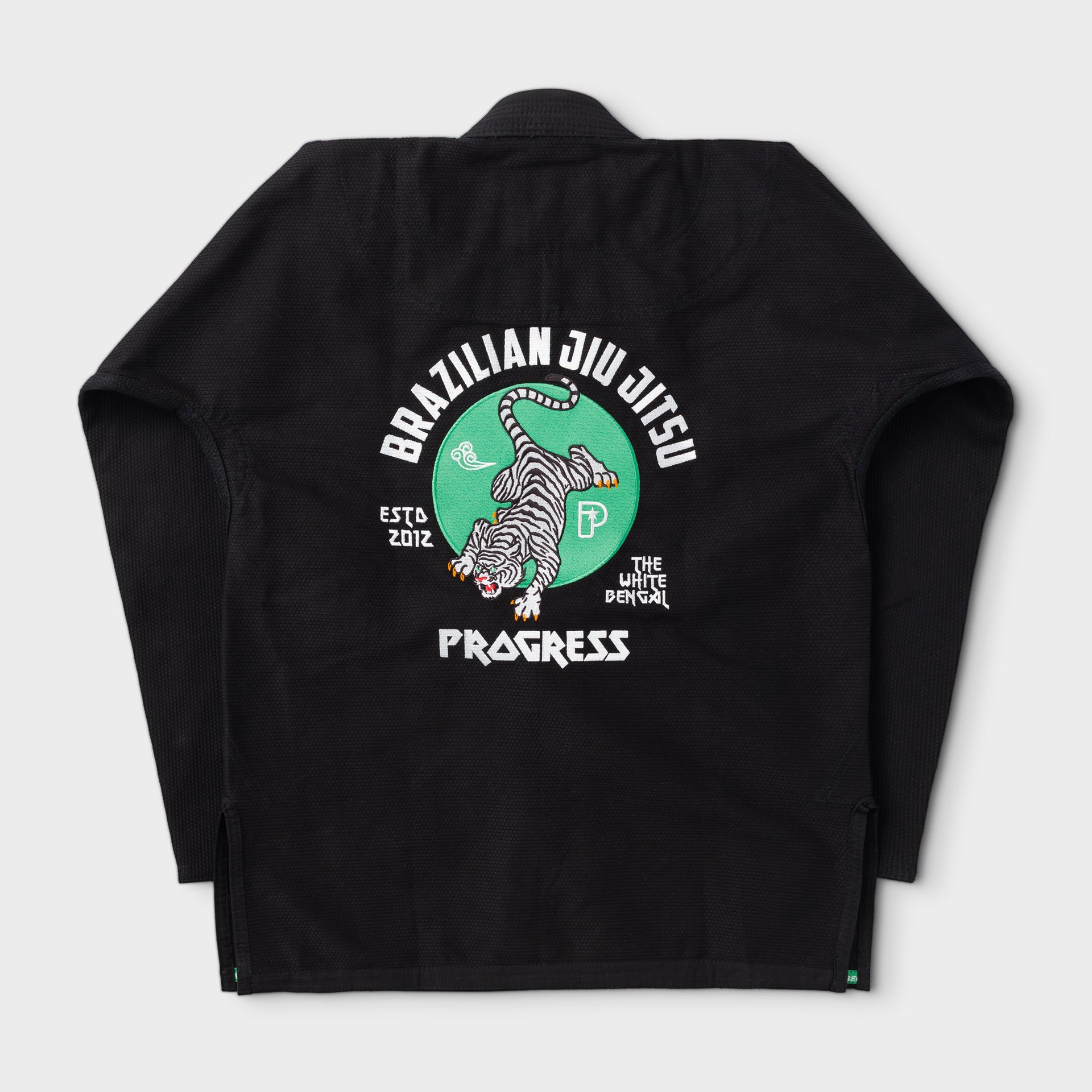 The original Bengal white gi was a fan favorite, so Progress has reintroduced it in a sleek black finish. This highly sought-after gi is crafted with a mid-weight, 450 GSM pearl weave cotton, striking a perfect balance between comfort for rolling and durability for long-lasting use.