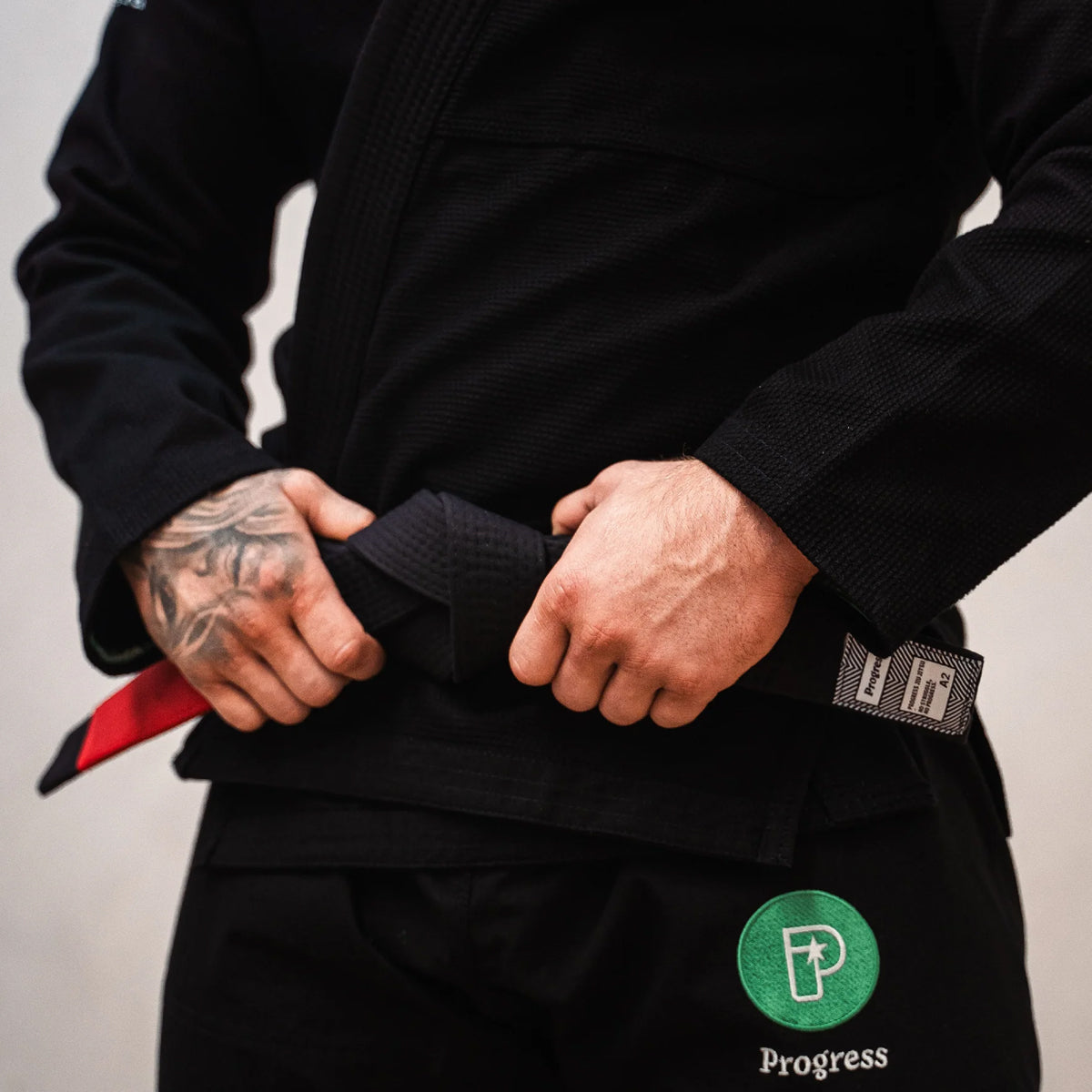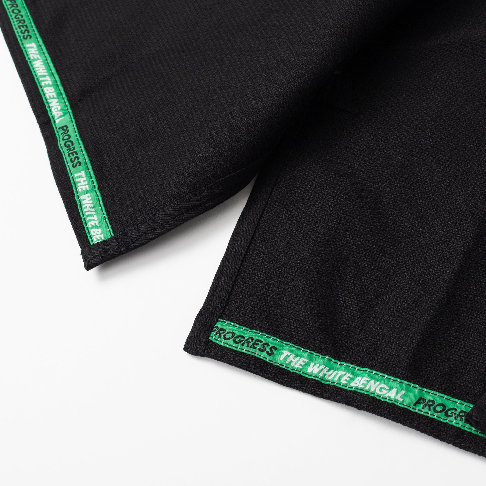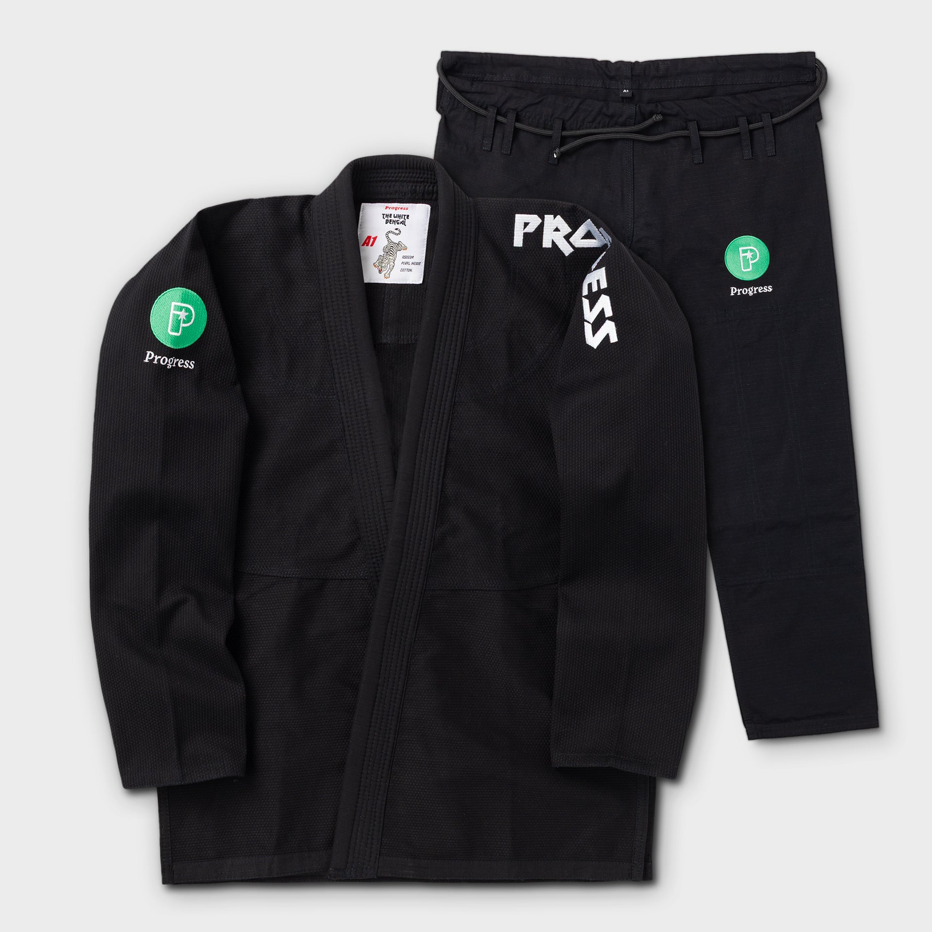 The original Bengal white gi was a fan favorite, so Progress has reintroduced it in a sleek black finish. This highly sought-after gi is crafted with a mid-weight, 450 GSM pearl weave cotton, striking a perfect balance between comfort for rolling and durability for long-lasting use.