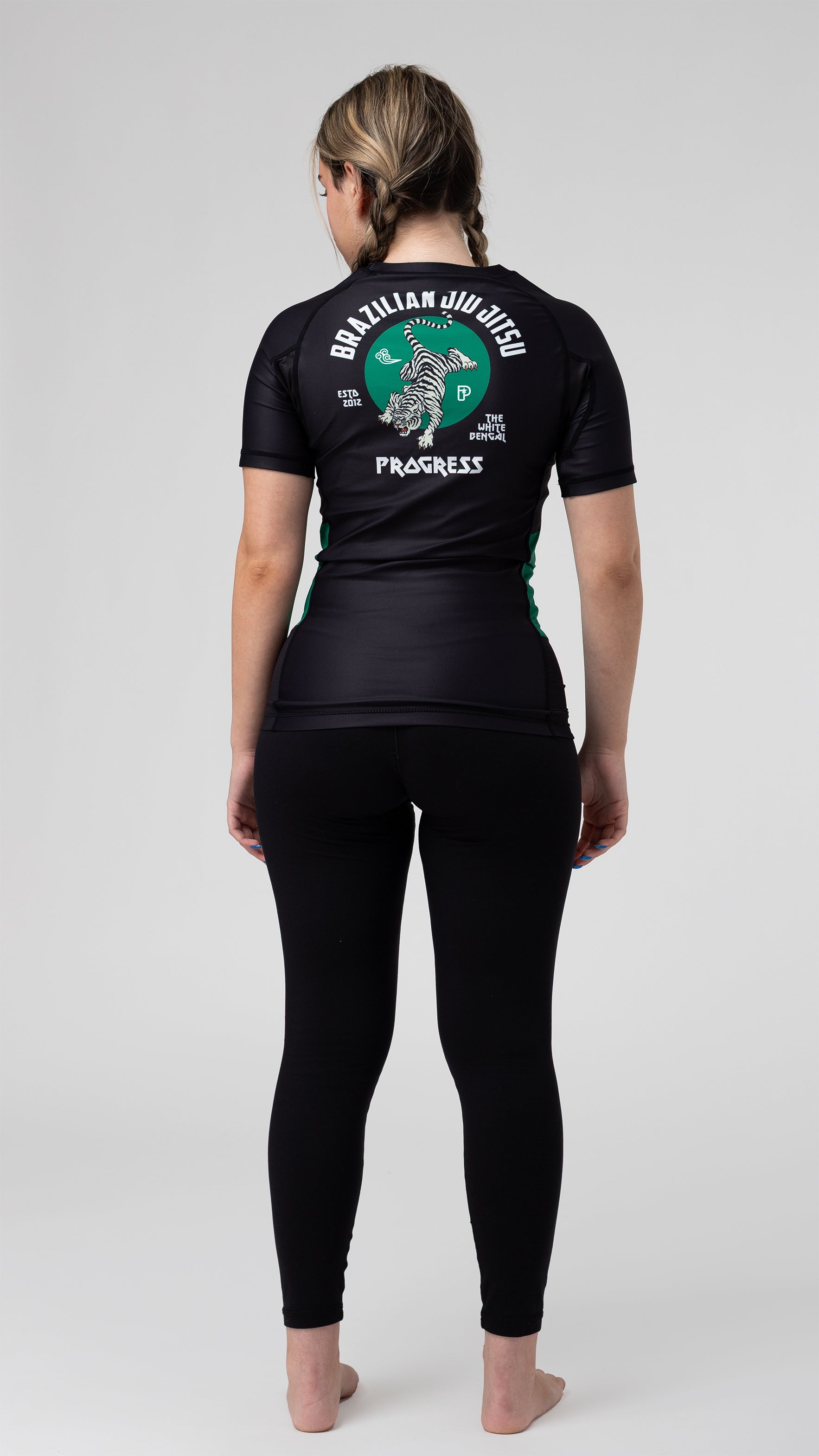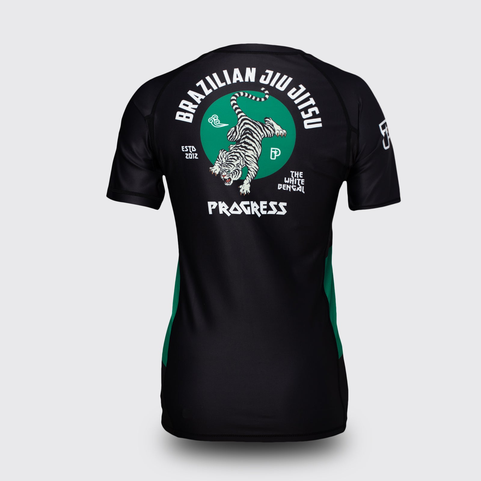 The Bengal rash guard from Progress maintains their high-quality standards with new construction improvements. It features mesh side panels for enhanced ventilation, and the bold, vibrant designs beautifully contrast with the overall color scheme.