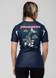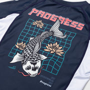 The Unknown Koi rash guard from Progress upholds their high-quality standards while introducing new construction improvements. Featuring side panels made of mesh material for enhanced ventilation, the designs are bold and vibrant, with contrasting white side panels and branding that complement the overall color scheme beautifully.