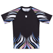 The Rash Guardians "Lion" rash guard features a powerful symmetrical design with some beautiful accent colors. Made with a tried and true polyester/Spandex blend and reinforced seams.