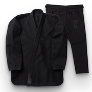 Introducing the Scramble Base-K bjj gi in a new, exclusive all-black colorway! A beautiful minimalist design with razor-sharp branded patches and top-notch embroideries. The jacket features a traditional 450gsm pearl weave, while the pants are crafted from durable midweight ripstop material, complete with reinforced knees for added durability.