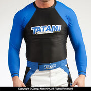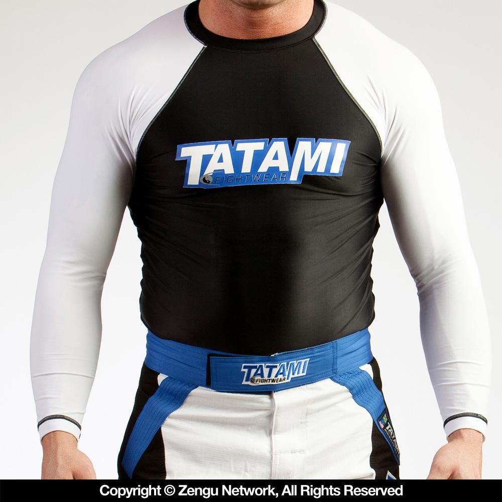 Available in IBJJF approved colors, this rashguard can be worn to your next IBJJF competition all the way to the winner's podium. The factory stitches them with a unique quality... Inside-out, so the interior is especially comfortable around the seams. Constructed from a high quality lightweight polyspandex with long sleeves and a long torso to protect you from mat-born germs. Nobody likes when their rashguard rides up during a roll, so Tatami extended the torso on these to put an end to all that. The Tatami logo is across the black area, while the sleeves and shoulder are approved IBJJF colors.