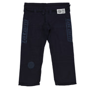 In typical Estilo fashion, the 5.0 is built from super durable fabrics: 550 GSM Pearl for the top, 12 oz. canvas cotton for the trousers. Tatami introduces us to their Y-shaped side vents, which replace the conventional straight split vents at each side of the jacket skirt. This angled Y cut lets the skirt to rest more naturally around the waist whether you're standing or on the ground. Both the top and bottom are ready for battle thanks to the heavy rows of stitching, reinforcement panels, and double-layered knees. Pants are equipped with slightly wider loops that better guide the cord drawstring. In addition to the graphic embroideries, there are few woven labels tastefully added. One at the pants waist hidden under the jacket skirt and one hidden inside the jacket opening (outlining the care instructions).
