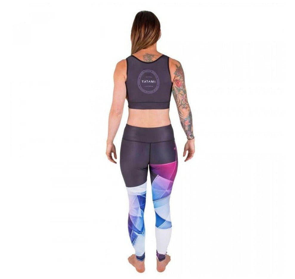 Introducing the new "Prism" line from Tatami! This comfortable sports bra features a stunning sublimated design that will not fade, peel, or crack. It consists of a soft 85% polyester 15% spandex blend. The elastic compression provides a comfortable fit and the secure flatlock stitching makes for a solid construction. The Prism line is available in spats, sports bra, and rashguard.