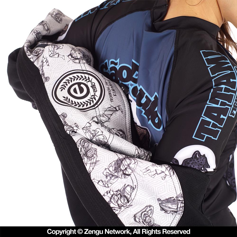 The 5.0 boasts simple yet refined logos along the shoulders and thighs, using a unique embroidery process with merrowed edges and a flat surface. Other visual updates to the newest Estilo include woven graphic taping along the interior seams (cuffs and skirt) as well as a beautifully sublimated interior yoke panel. As always, Tatami uses incredibly durable materials. The jacket is 550 GSM Pearl and the pants are 12 oz. canvas cotton with reinforced knees. With the split side vents, Tatami brings something innovative to the table this time around... Instead of straight split vents, they've adjusted the cut for a new "Y" shape. This angled vent style allows the skirt to fall more naturally around you waist, especially when moving rapidly while grappling.
