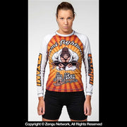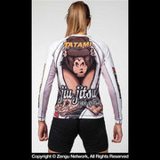 It's not every day that you come across a rashguard with a giant medidating gorilla on the chest. This awesome ladies rashguard from Tatami Fightwear offers an accommodating fit with separate panels to maximize flexibility and range. Complete with original Zen Gorilla artwork from Chris Burns. All seams use flatlock stitching to ensure you have a long-lasting product. Like most Tatami rashguards, this one is constructed from a soft and comfortable polyester/spandex blend (80/20).