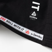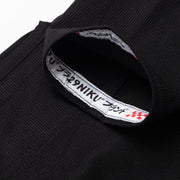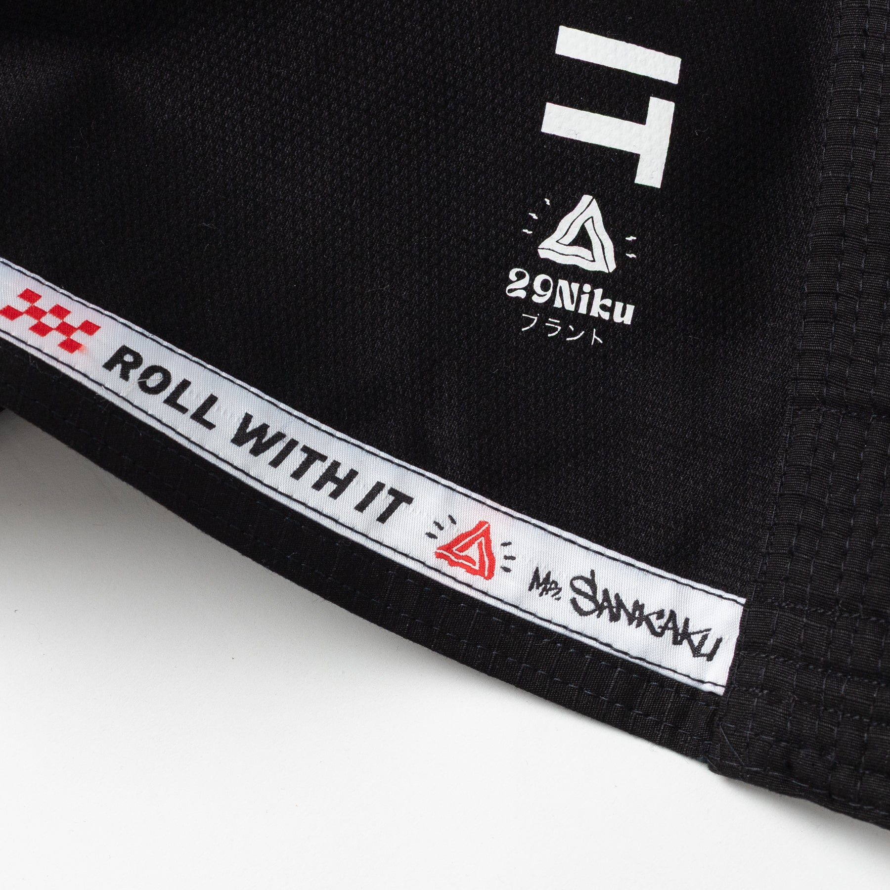 29Niku's Mr. Sankaku gi has a sleek black design featuring stylish branding and sharp embroideries. Additional details include an interior jacket print and taping along the inner cuffs and jacket hem.