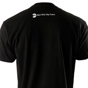 The rear NTB logo is a play on the MTA logo, accompanied by the double-entendre text New York Trains.