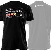 Inspired by classic NYC Subway entrance signs, this 93 Brand tee puts an urban spin on Jiu Jits's pan-american trip during the late half of the 20th century: Jiu Jitsu arrived in Torrance via Rio de Janeiro. Using the genuine 9, 3, B, and R line symbols, this tee is true to the core.