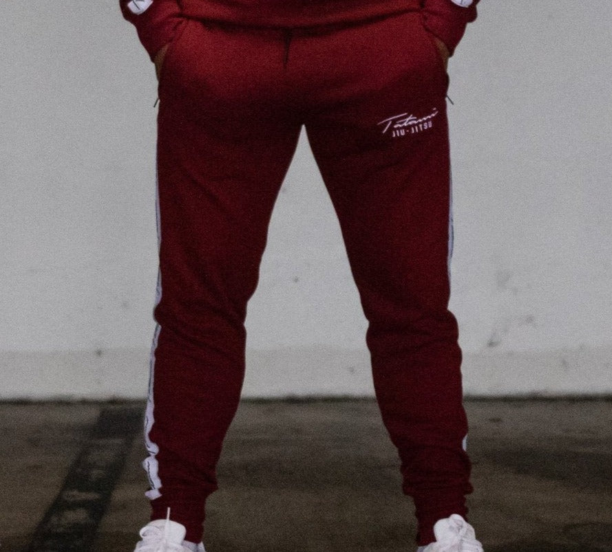 The joggers feature the exclusive Autograph design across one of the pant legs which contrasts nicely with a bold red base color and dark drawcords. These tapered fit joggers provide excellent comfort and mobility.