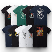 When you place an order, you’ll receive two Tatami tees—handpicked at random (you cannot choose which tee you'll receive). All shirts have a fitted design with a classic crew neck and are 100% cotton. They feature sharp graphics with a nice variety of Tatami branded tags and prints. It's recommended to wash them cold and hang dry to keep them looking their best. Check out the photos to see all the available designs.