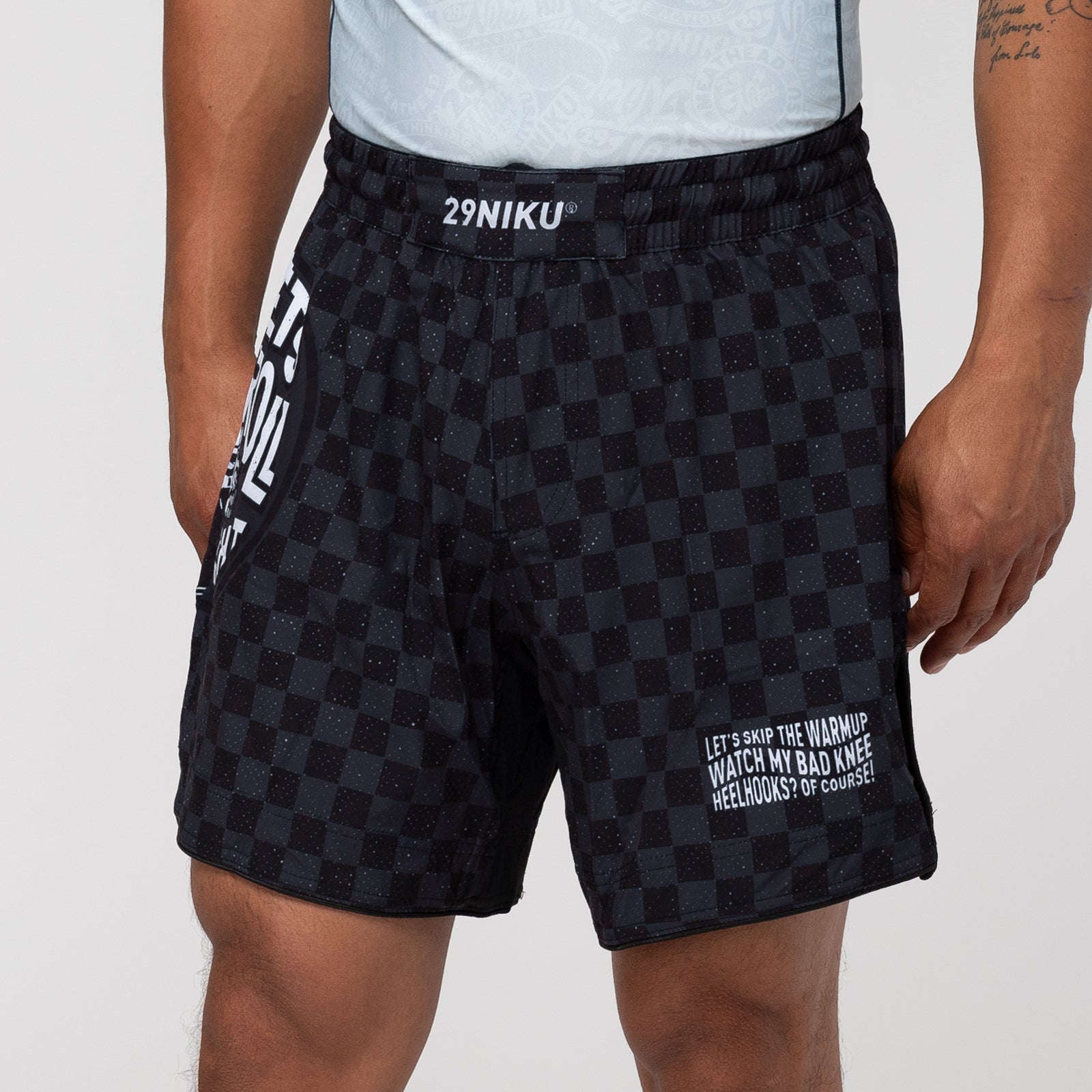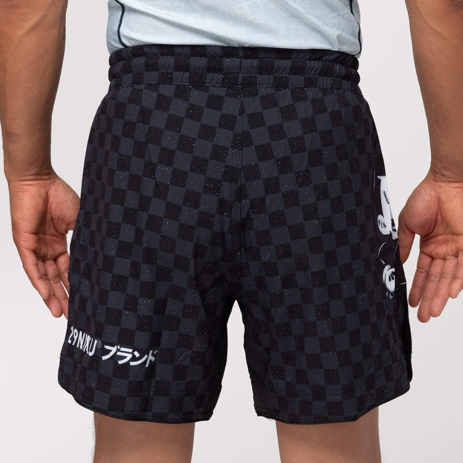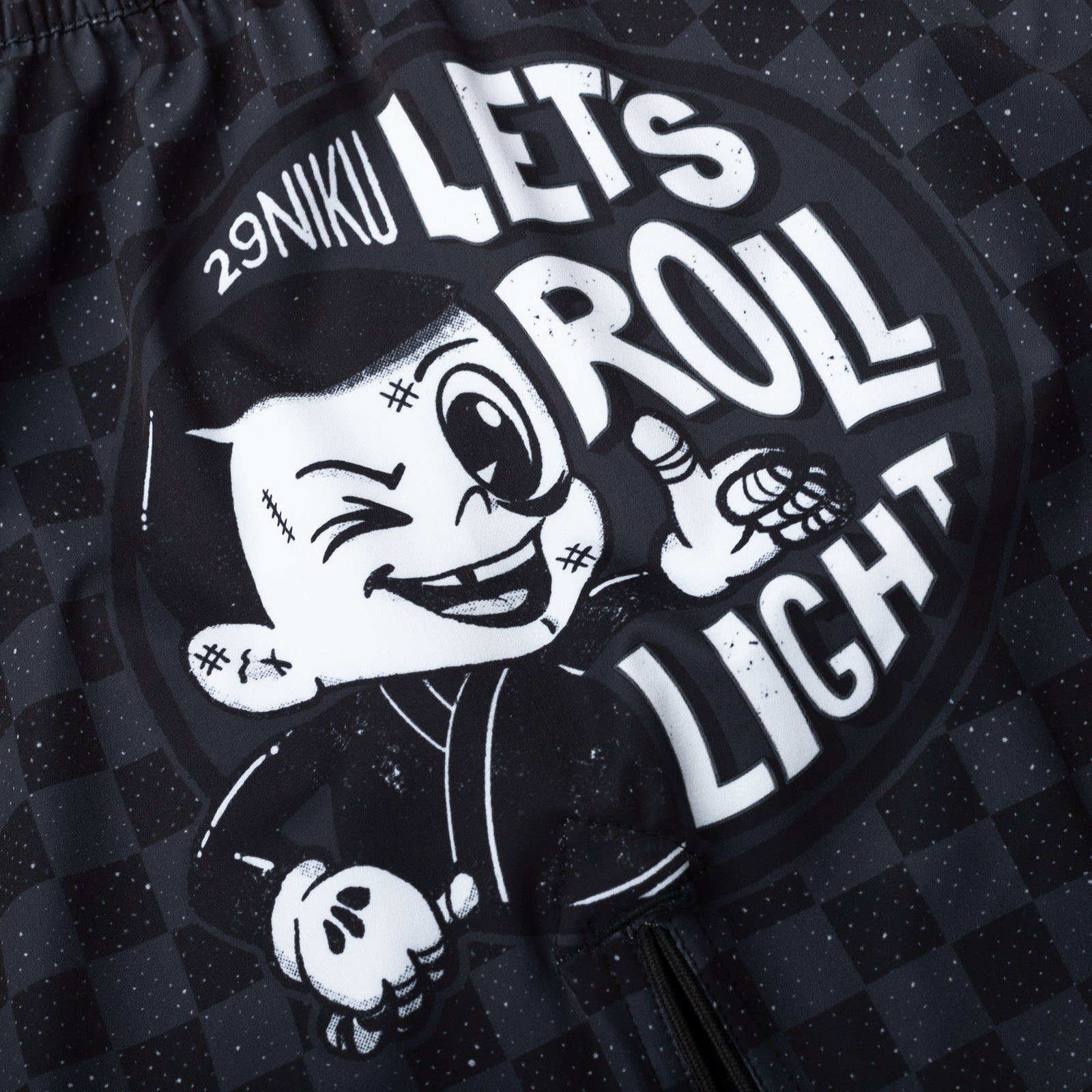 29Niku's popular "Let's Roll Light" graphic is now on a comfortable pair of Nogi shorts. They sport a sublimated checkered base design with some tasteful contrasting branding. Constructed with an elastic waist, no Velcro, and a moderate length that rests above the knee.