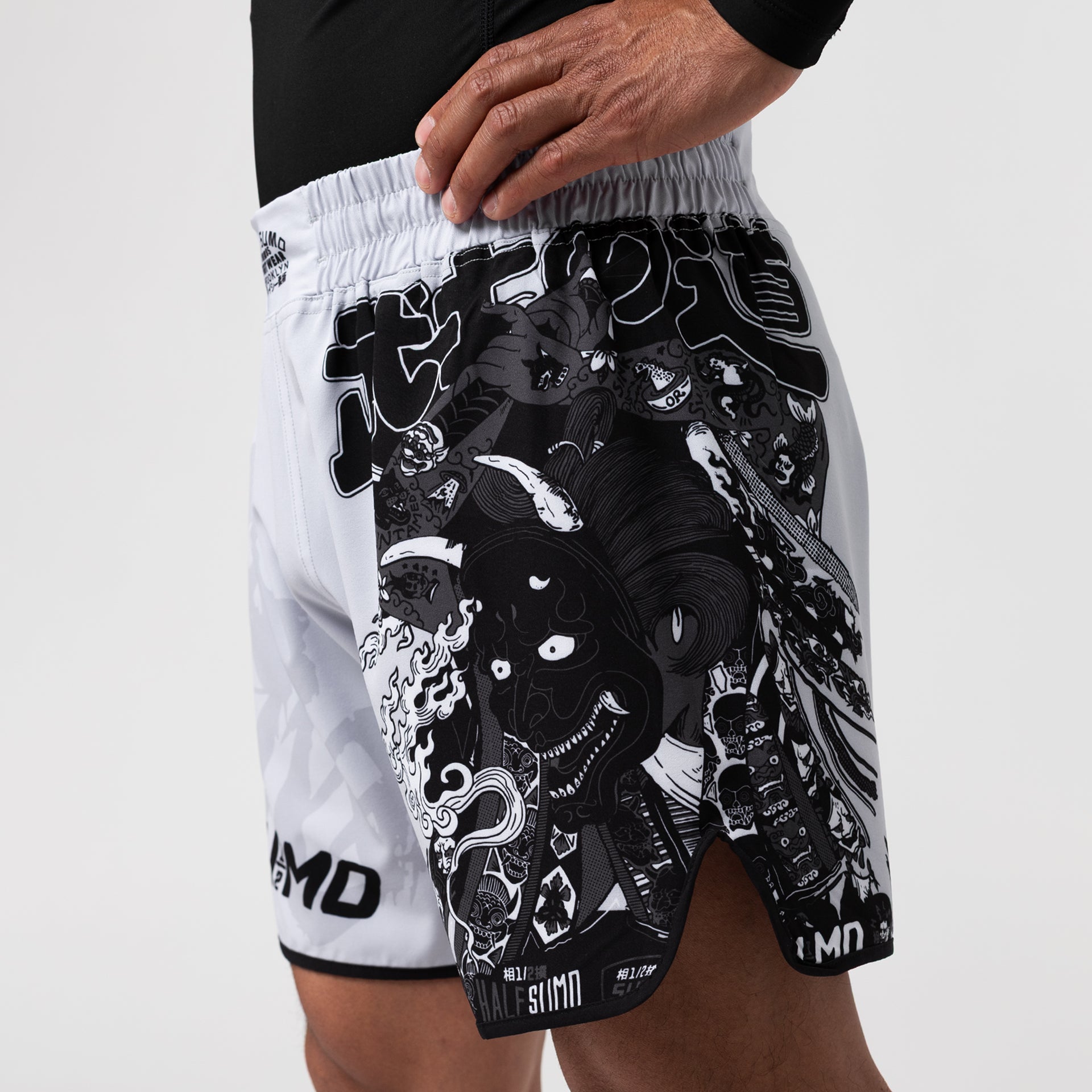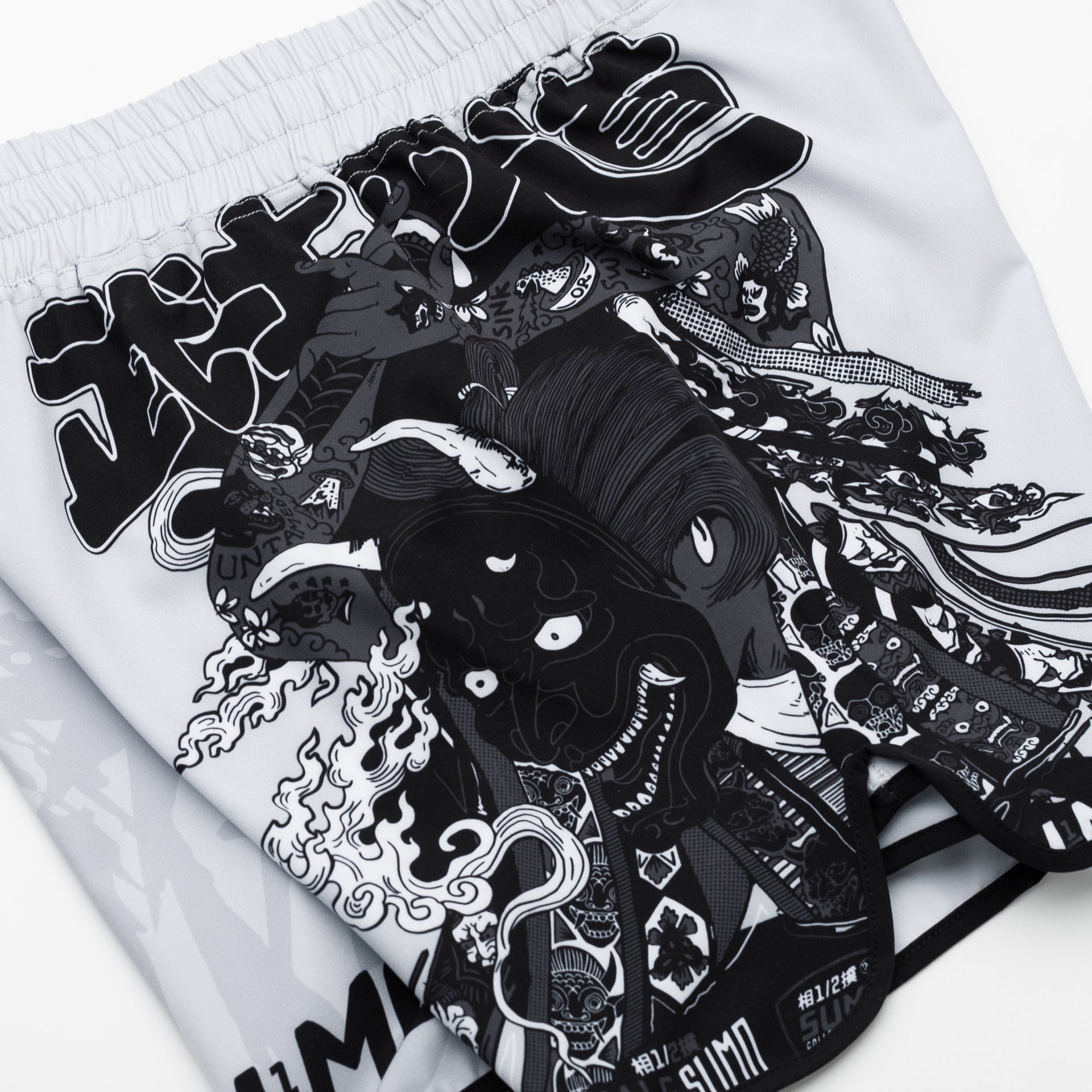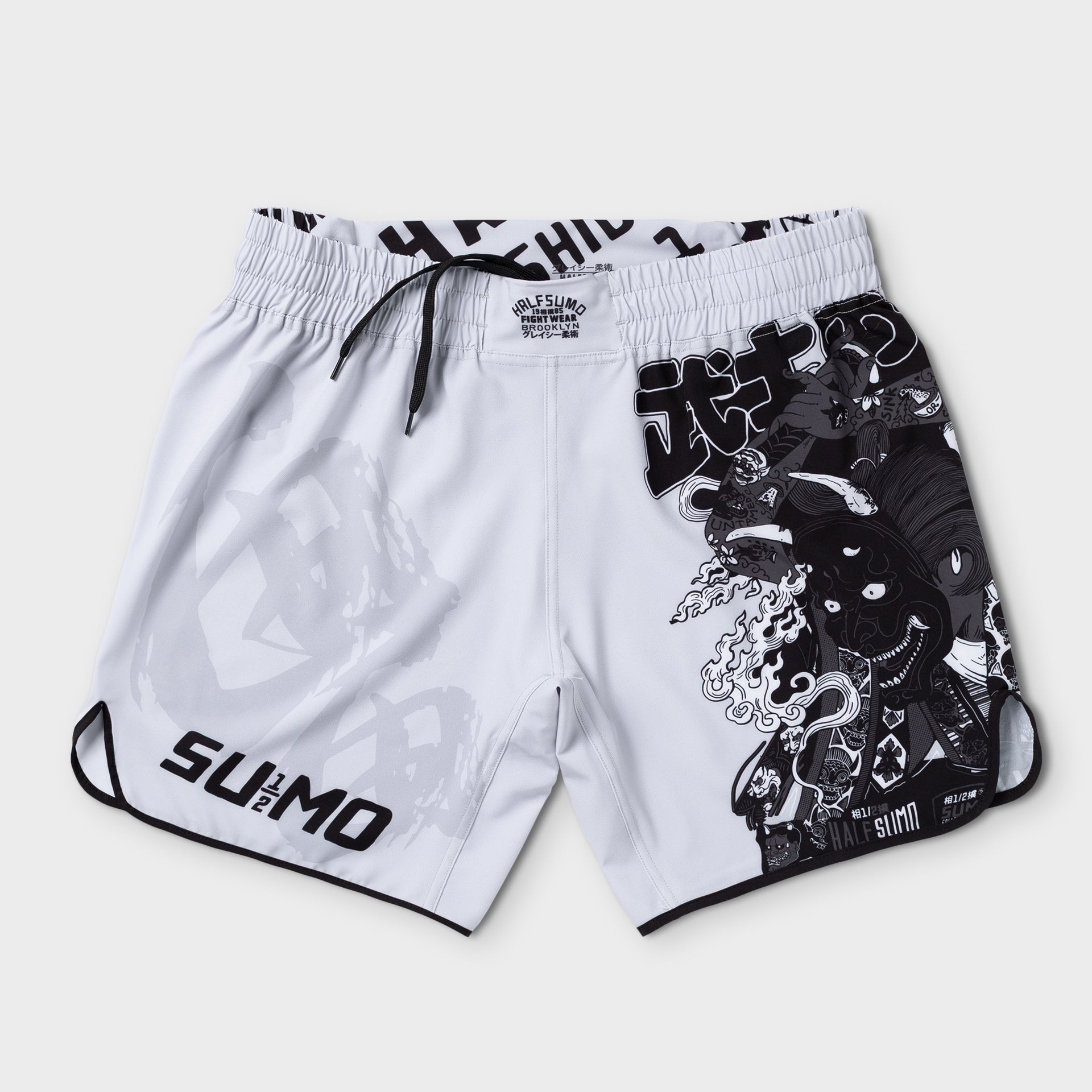 Half Sumo's Hannya shorts offer a lightweight feel, making them perfect for grappling. Featuring an elastic waistband with an internal drawstring for a secure fit without any Velcro to get in the way. All artwork is fully sublimated into the fabric, ensuring lasting vibrancy and sharp detail through every session.