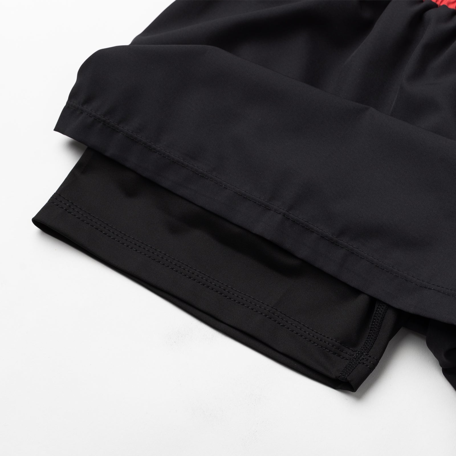 Inverted Gear's Black/Coral 2-layer grappling shorts are designed with the demands of hard training in mind. Featuring sublimated graphics and an updated shorter inseam length. Built with a flexible poly fabric body and elastic waistband