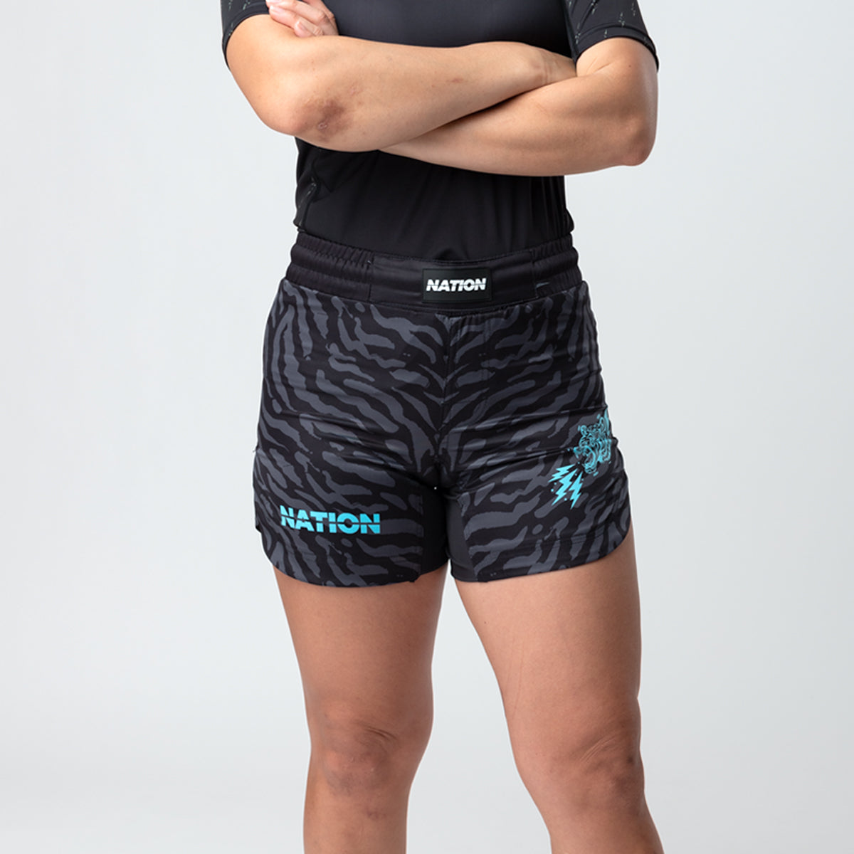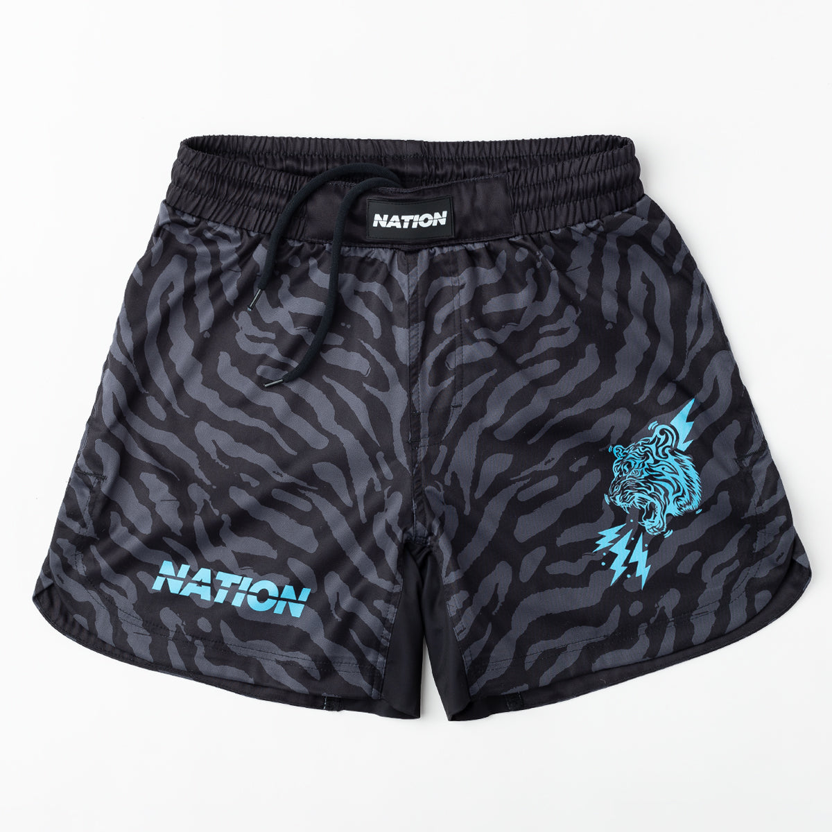 The Nation Athletics Tiger Roar shorts feature a Velcro free above-the-knee cut making them an excellent choice for Nogi grappling. All graphics are sublimated into the material so they'll never fade or crack over time.