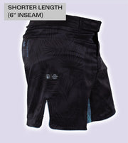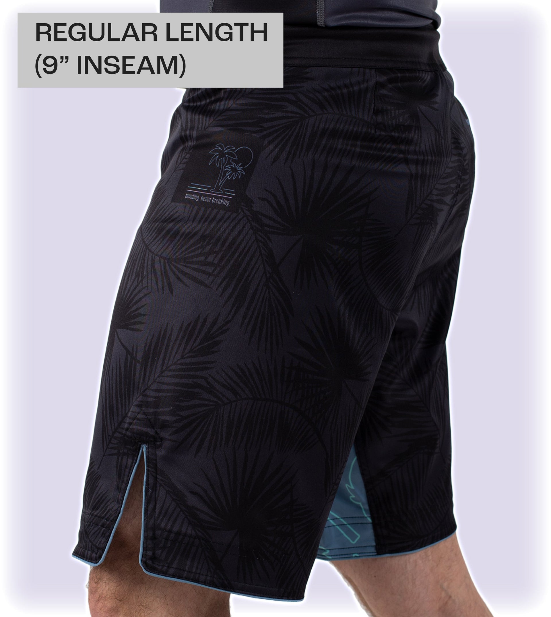 The Short Length, which has a shorter 6" inseam, is more like surf shorts and several inches shorter than classic Jiu Jitsu board shorts. The Regular Length has a 9" inseam, typical of classic Jiu Jitsu board shorts.