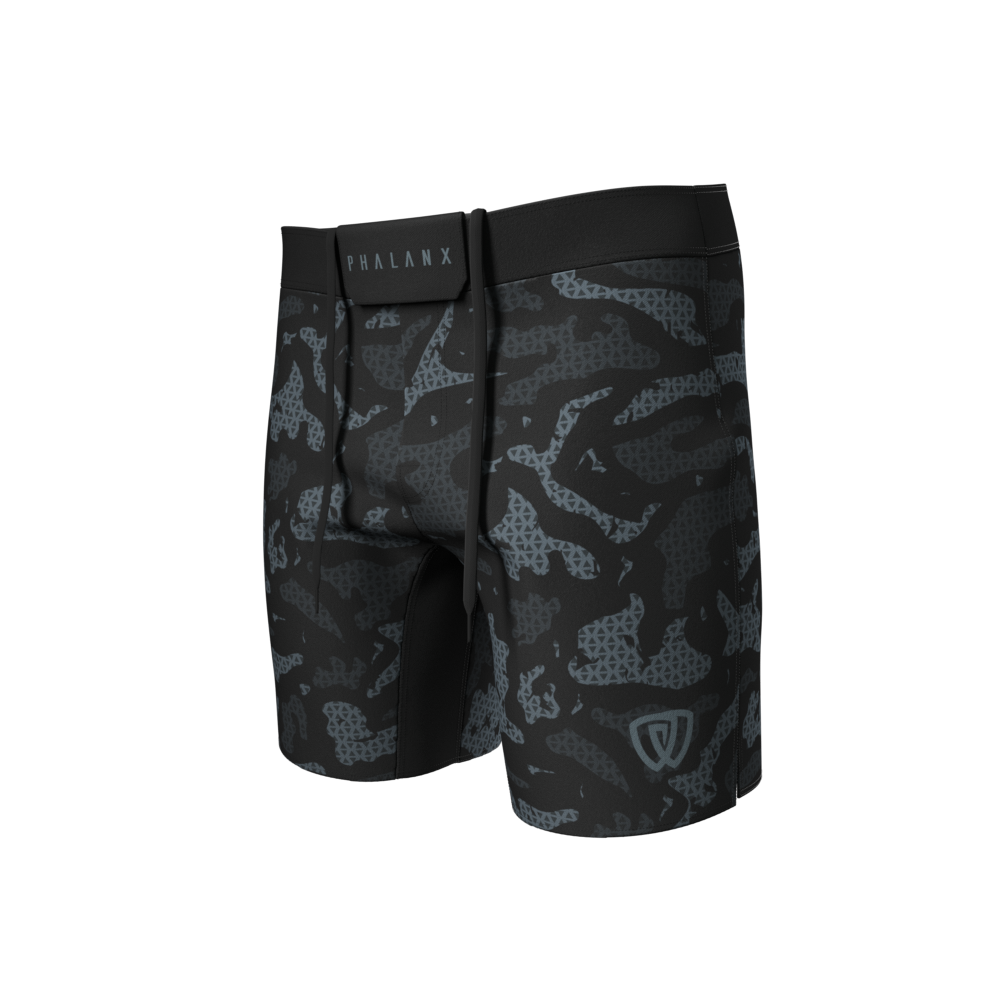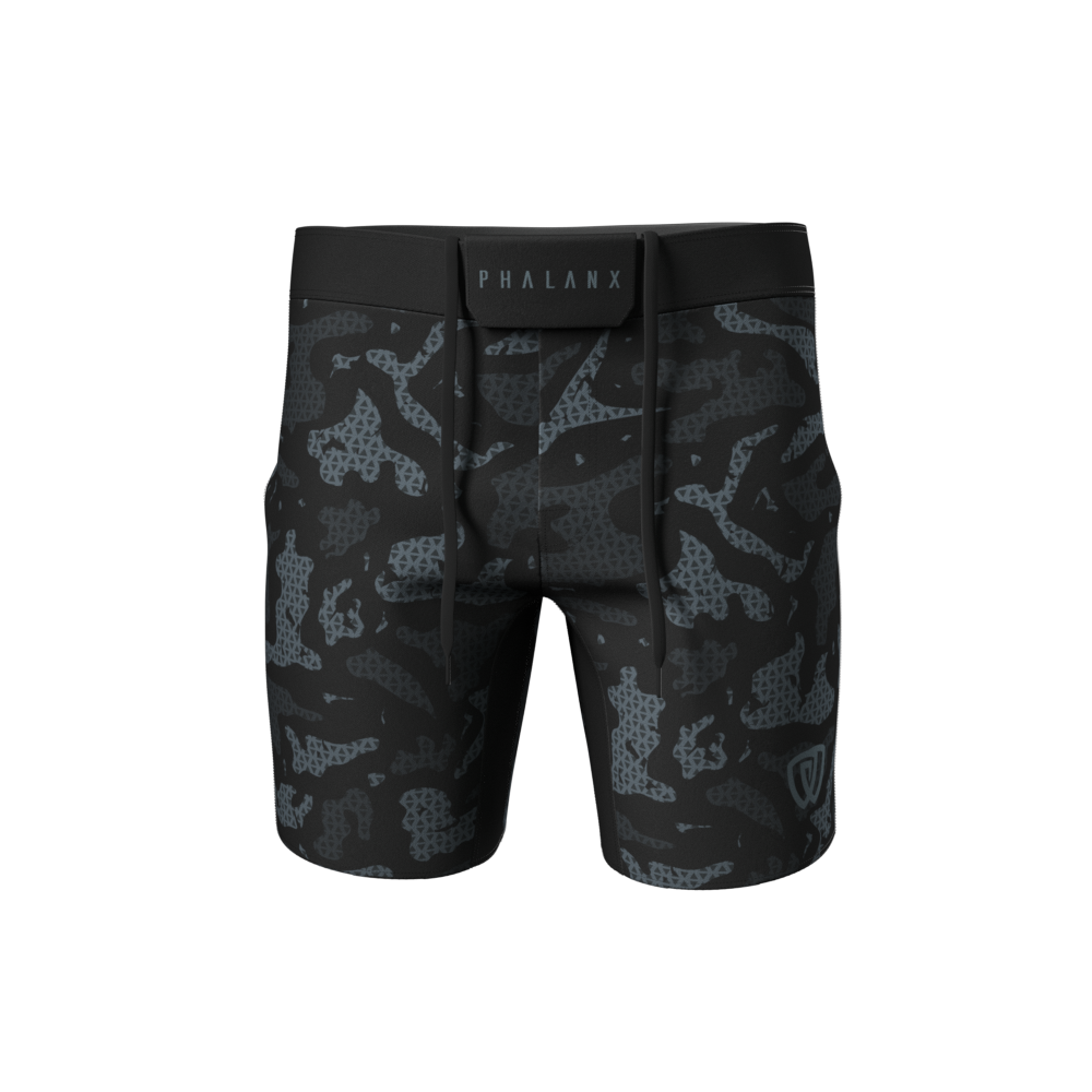 Ultra-lightweight Phalanx fight shorts, built for the daily Jiu Jitsu grind. Made with a soft 4-way stretch fabric, featuring sublimated artwork. Equipped with an internal drawstring for fine-tuned fit adjustment. Reinforced stitching at crucial stress points. Designed with combat sports in mind, and also works well for Crossfit, running, surfing, and strength training.