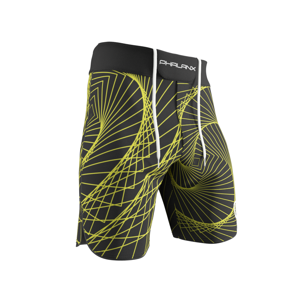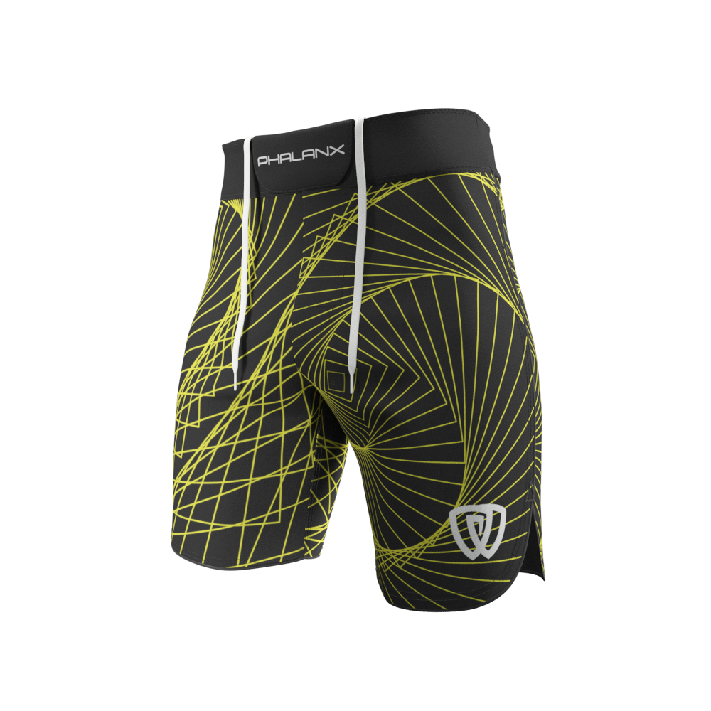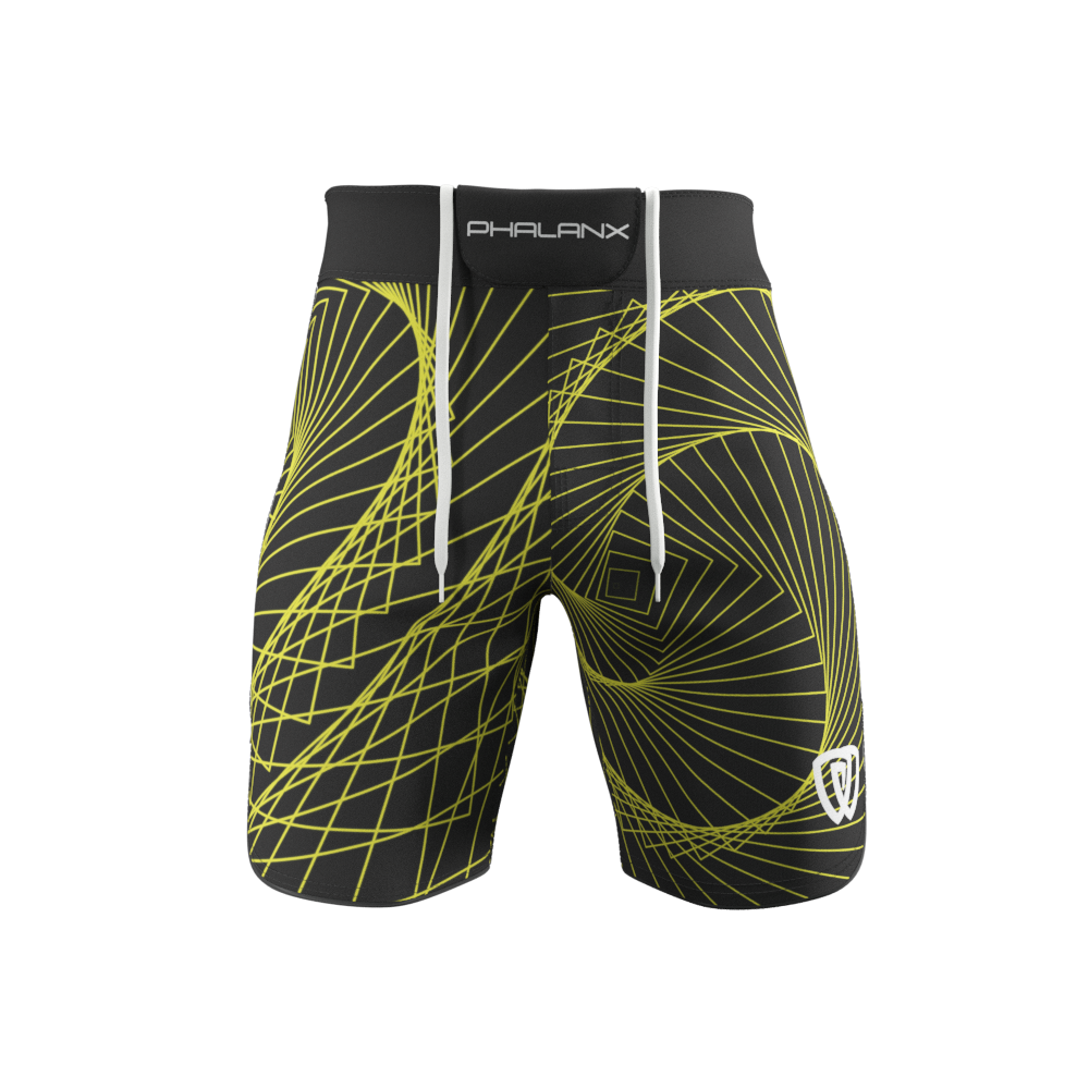 Ultra-lightweight Phalanx fight shorts, built for the daily Jiu Jitsu grind. Made with a soft 4-way stretch fabric, featuring sublimated artwork. Equipped with an internal drawstring for fine-tuned fit adjustment. Reinforced stitching at crucial stress points. Designed with combat sports in mind, but also works well for running, surfing, and strength training.