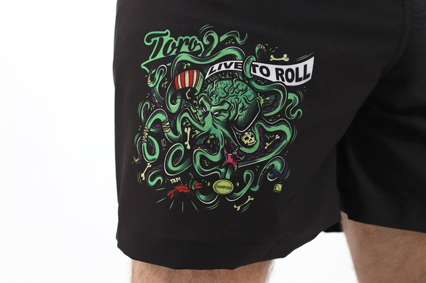Toro "KRAKEN" shorts feature artwork by Jack Tankersly. Super light 4 way stretch fabric that is an ideal fit for all combat sports, even a trip to the beach. Shorts are built with a no Velcro elastic waist, also with an additional internal drawstring to help find the perfect fit.